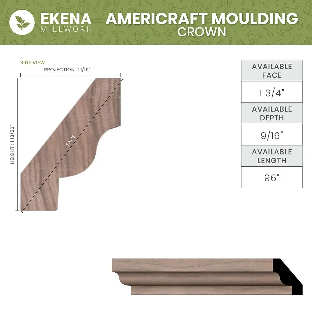 Wm60: 1-2/5-In H X 1-In P X 1-3/4-In F X 96-In L Americraft Solid Hardwood Stain Grade Crown Moulding - Walnut