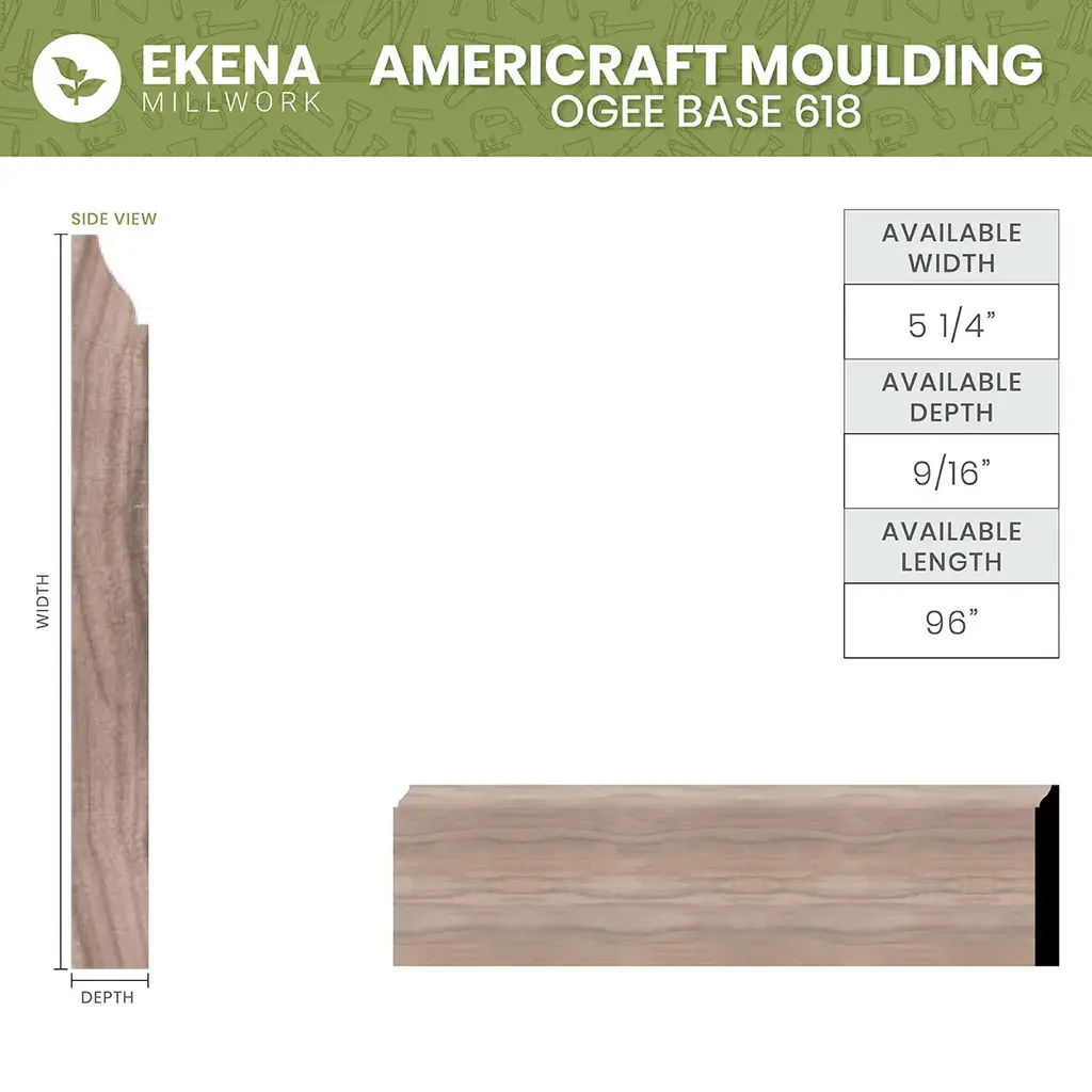 Wm618: 9/16-In D X 5-1/4-In W X 96-In L Americraft Solid Hardwood Stain Grade Ogee Base Moulding - Red Oak