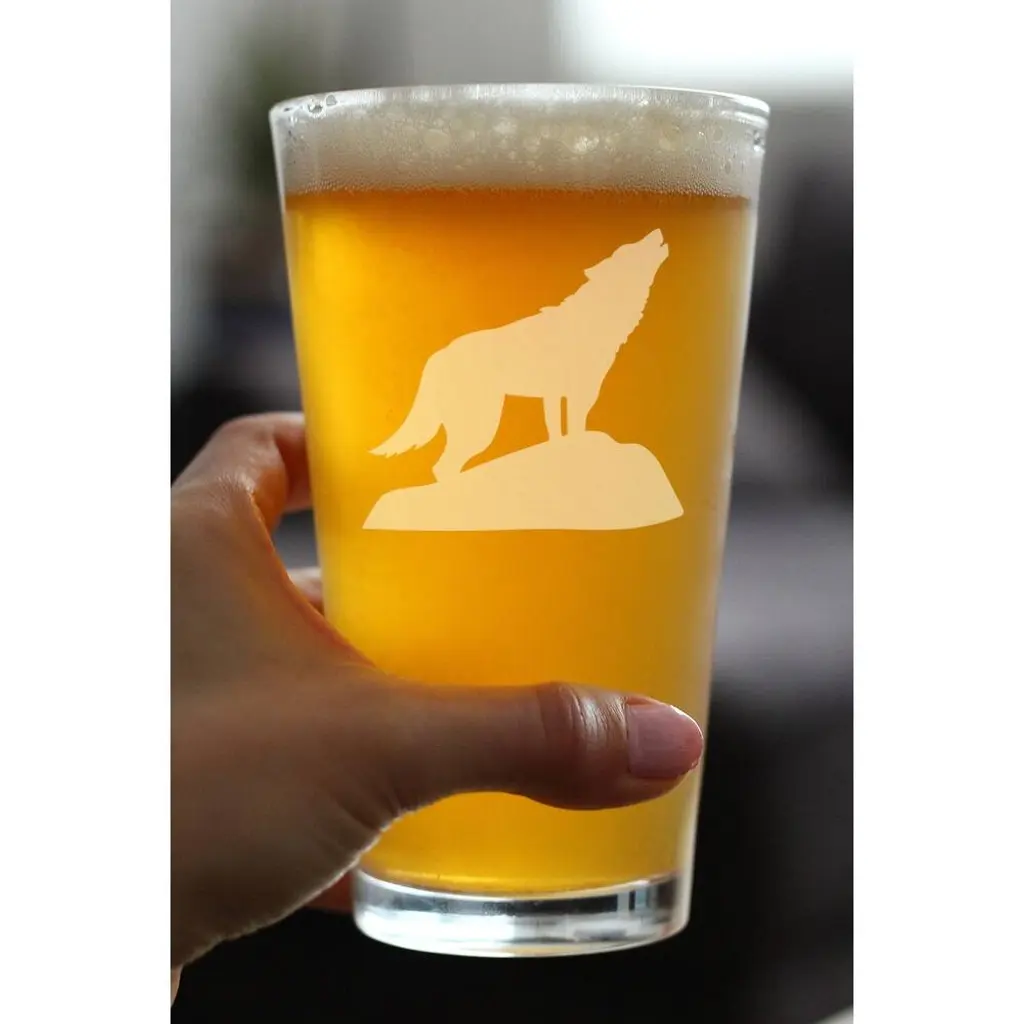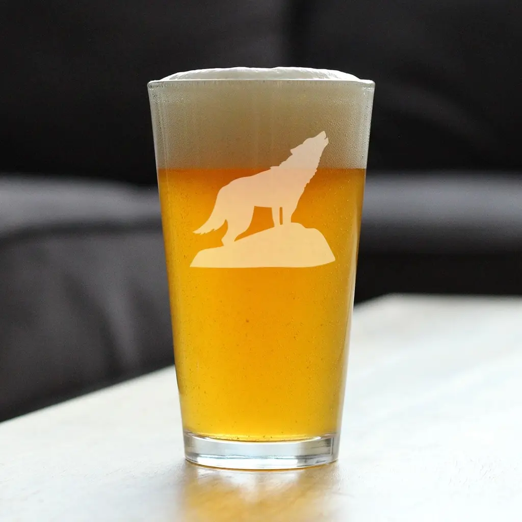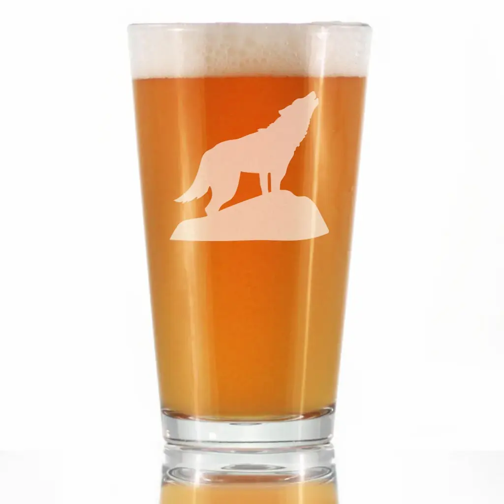 Wolf - Beer Pint Glass - Rustic Cabin Gifts - 16 Ounce - Clear