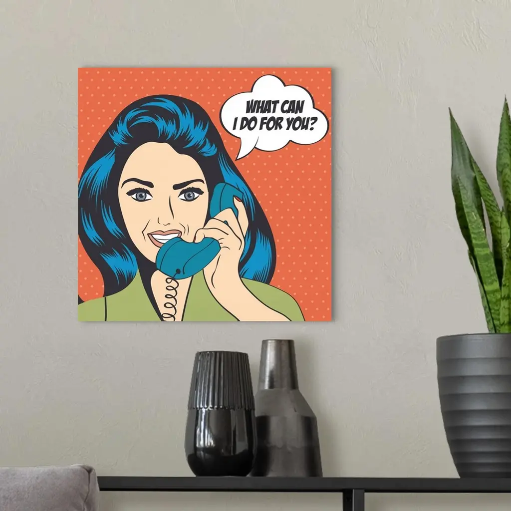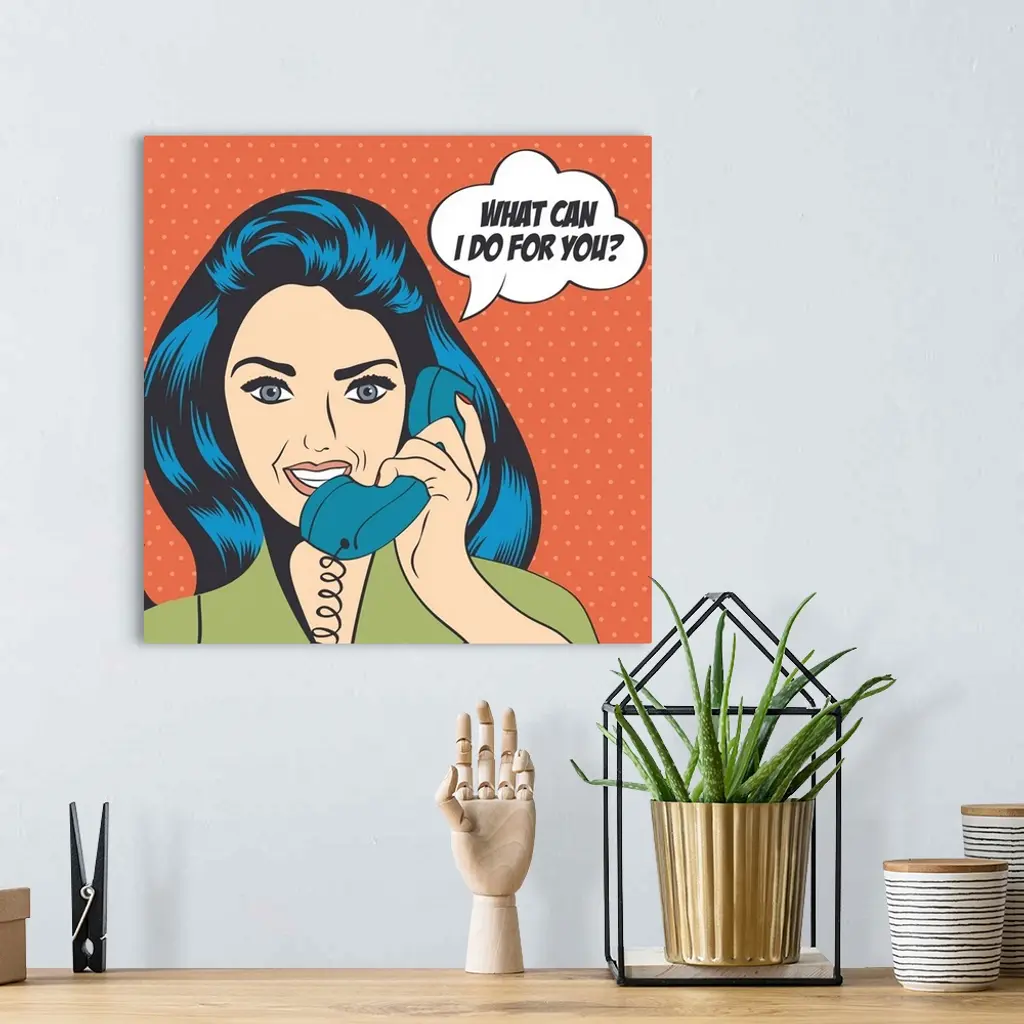 Woman Chatting On The Phone, Pop Art Illustration wall art for home and office decor. Discover canvas art prints, photos, mural, big canvas art and framed wall art in GreatBigCanvas.com's varied collections.