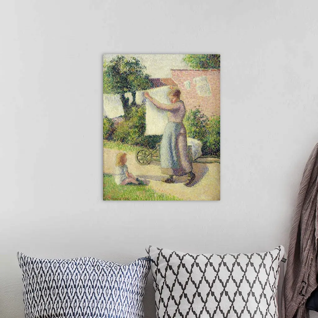 XIR15985 Woman Hanging up the Washing, 1887 (oil on canvas) by Pissarro, Camille (1831-1903); 41x32.5 cm; Musee d'Orsay, Paris, France; Giraudon; French, out of copyright