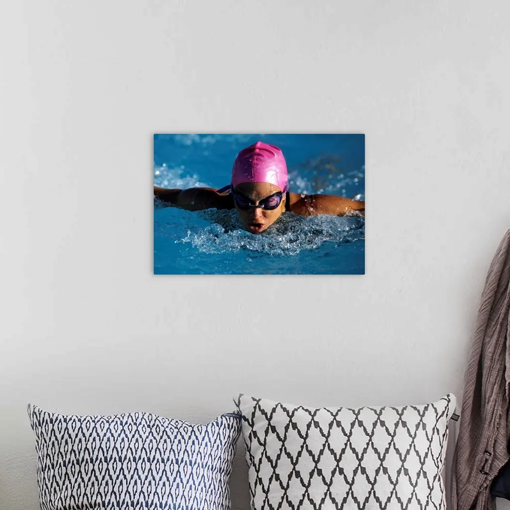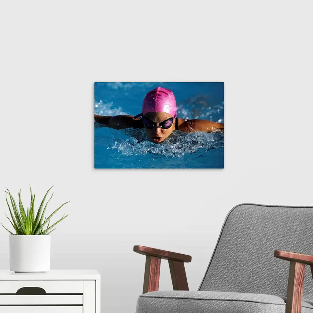 Woman In Action During A Butterfly Swimming Race.