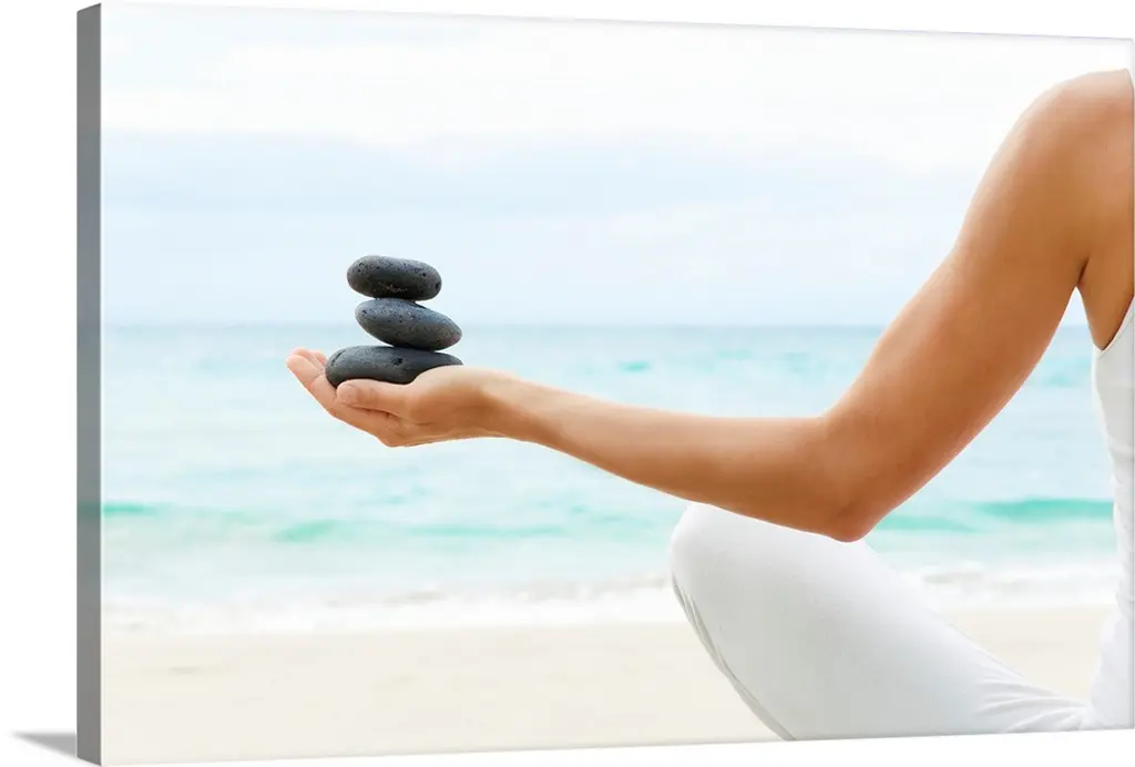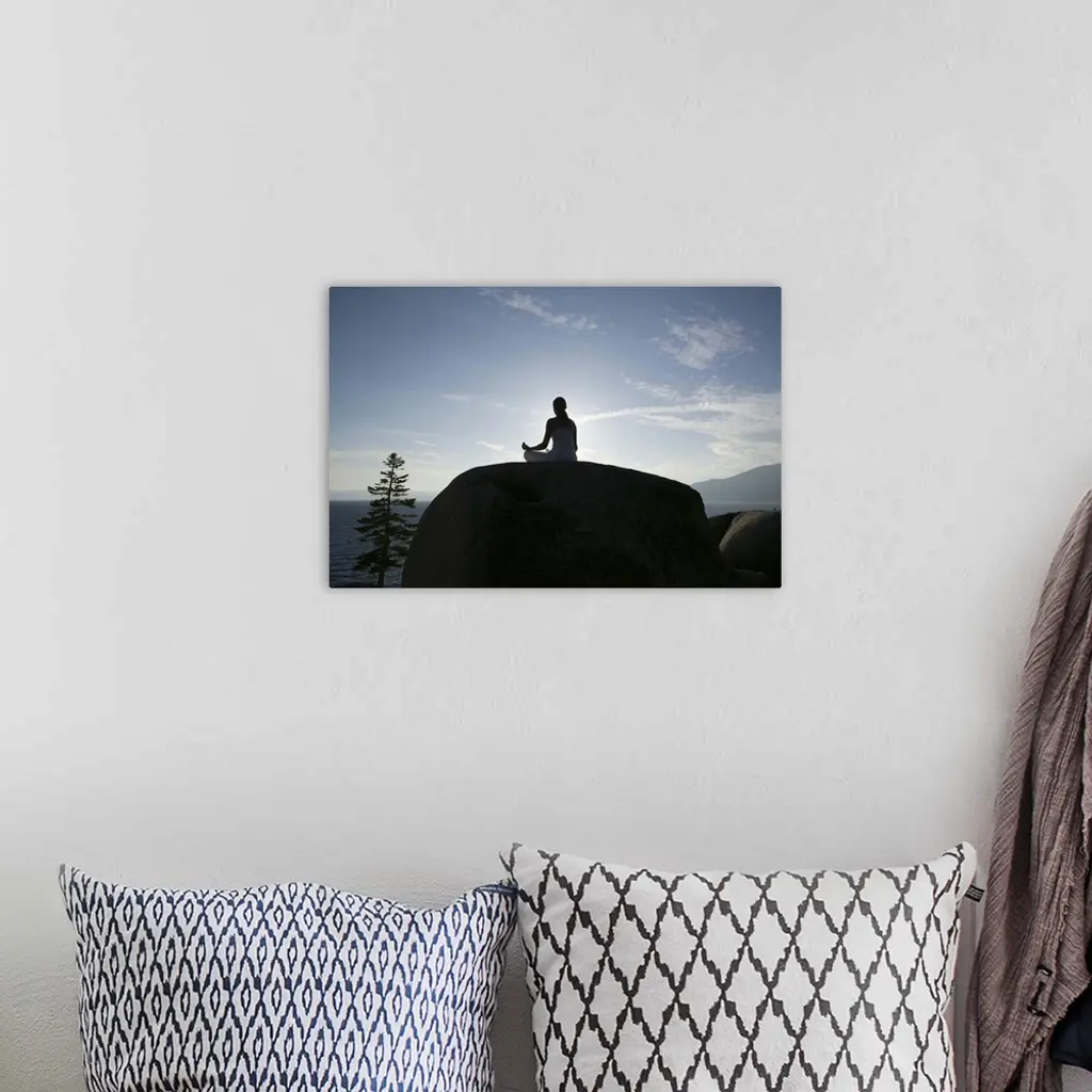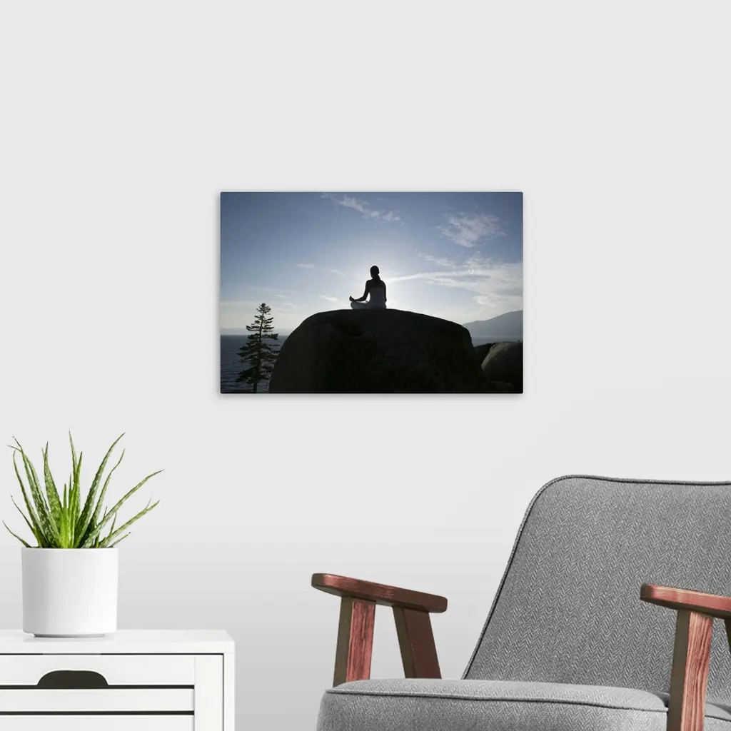 Woman meditating on rock wall art for home and office decor. Discover canvas art prints, photos, mural, big canvas art and framed wall art in GreatBigCanvas.com's varied collections.