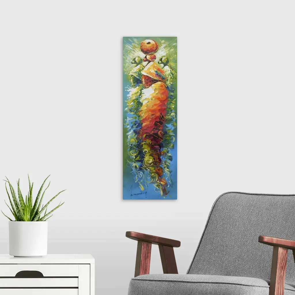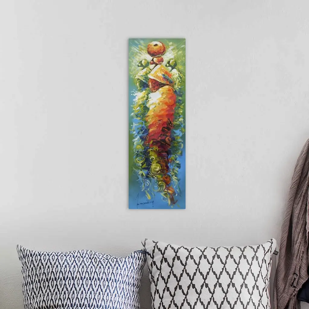 Appearing like a mystical mirage, three women share a social bond of friendship. In Ghana, a woman of substance is she who not only cares for her family, but also makes a good name for herself in society, says Bernard Mensah as he honors women in Ghana through his art.