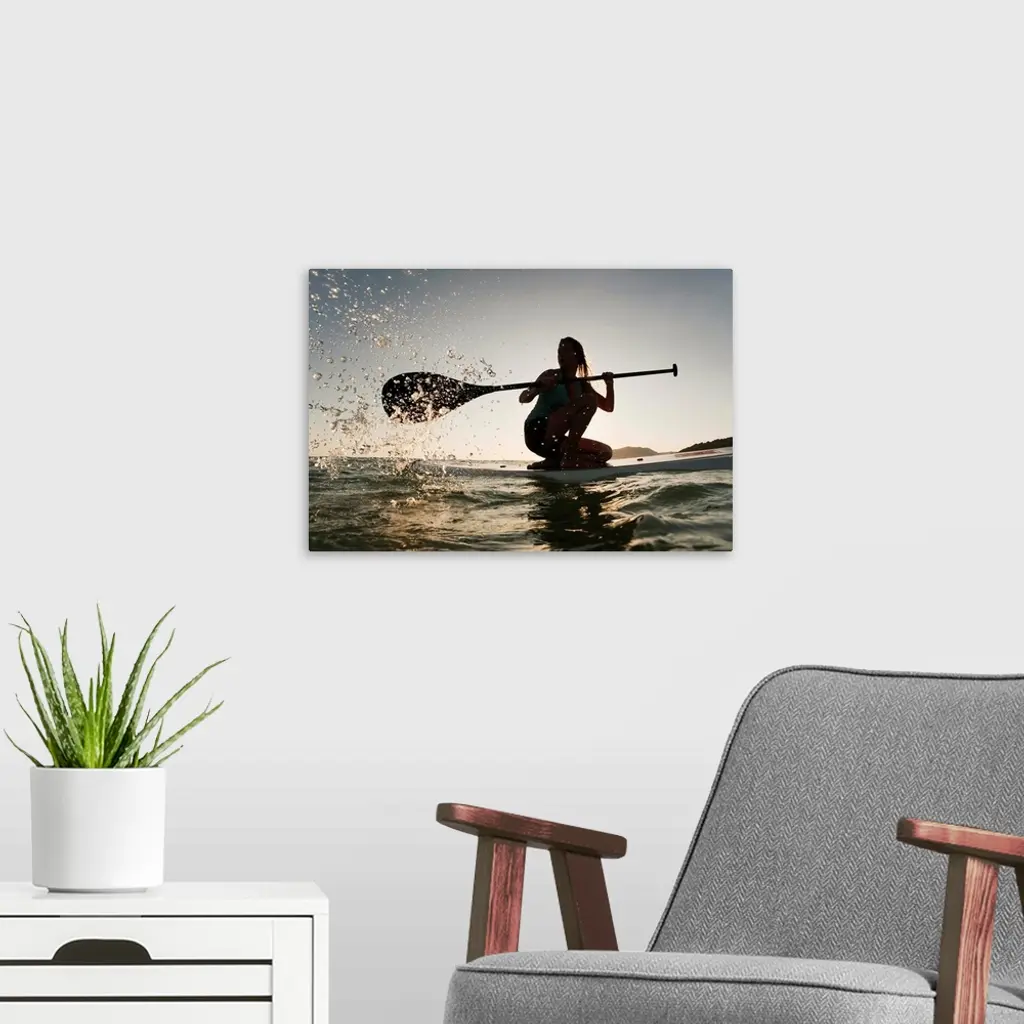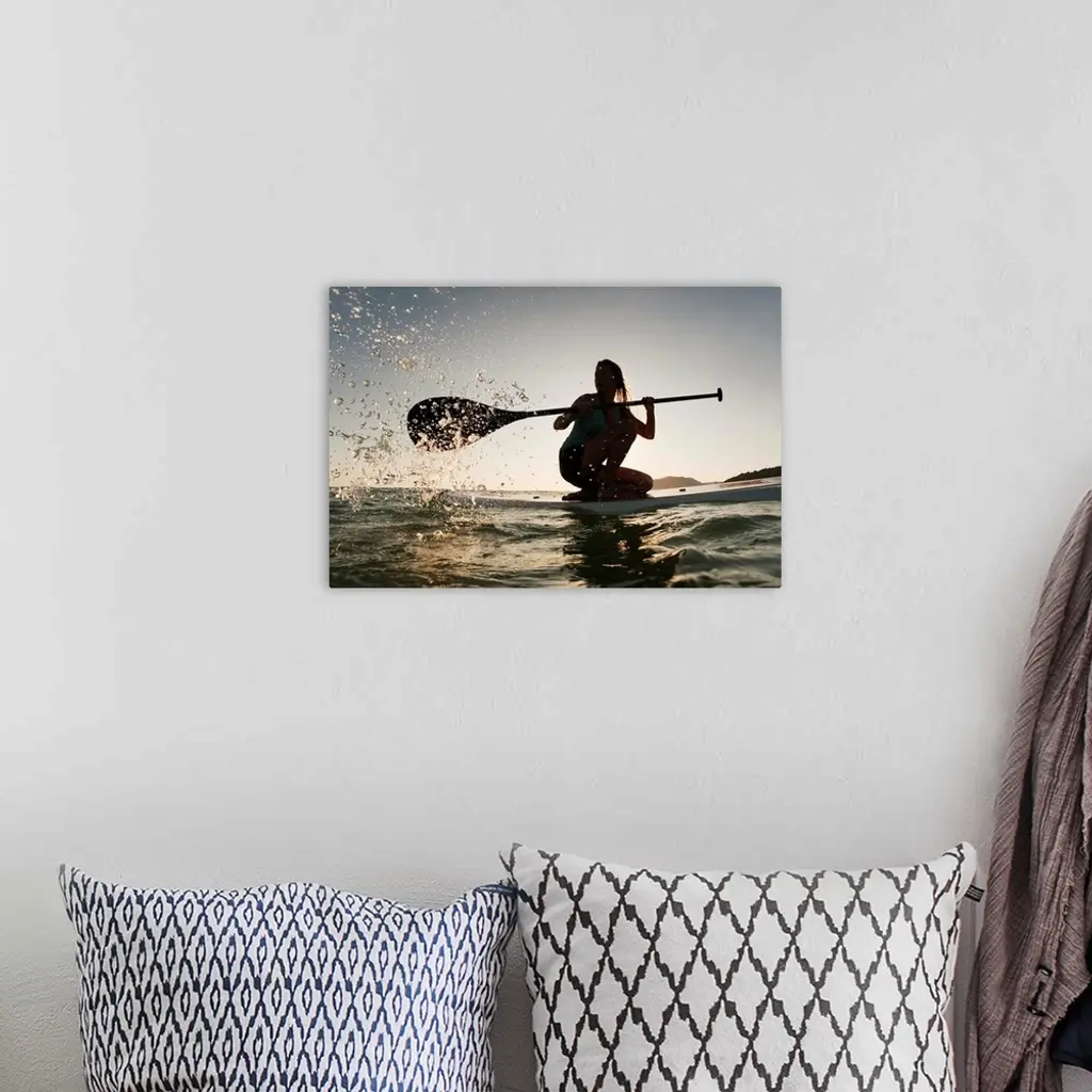 Woman Paddling While On Her Knees On Surf Board, Tarifa, Andalusia, Spain wall art for home and office decor. Discover canvas art prints, photos, mural, big canvas art and framed wall art in GreatBigCanvas.com's varied collections.