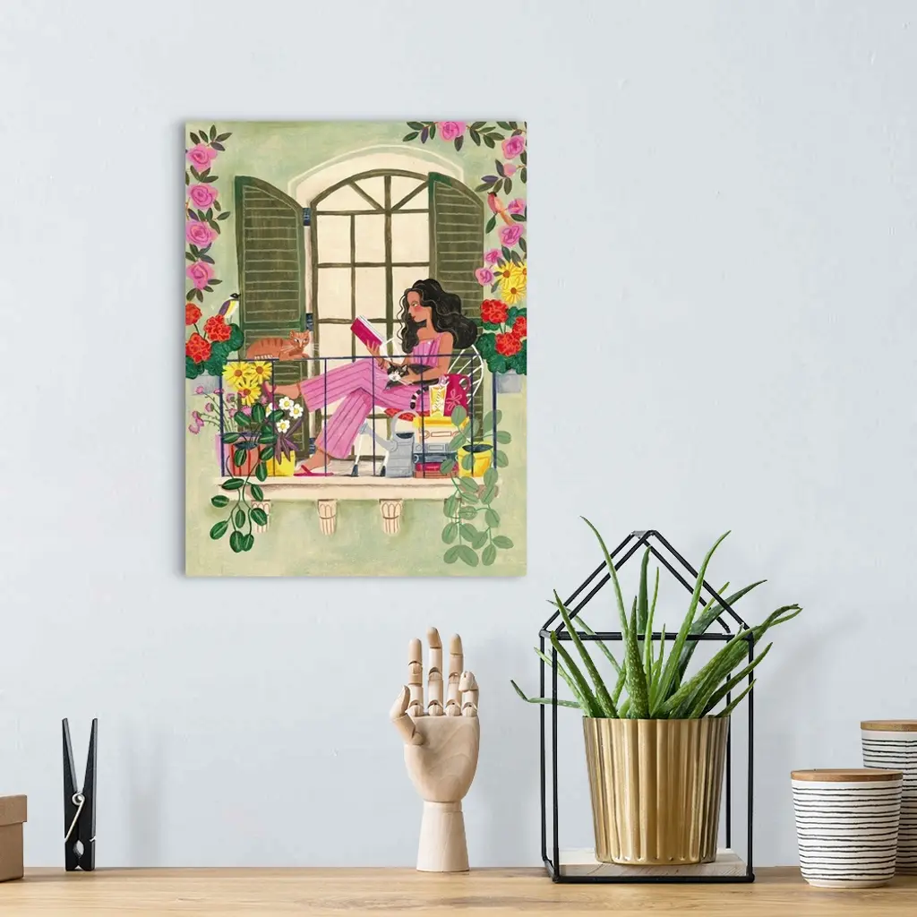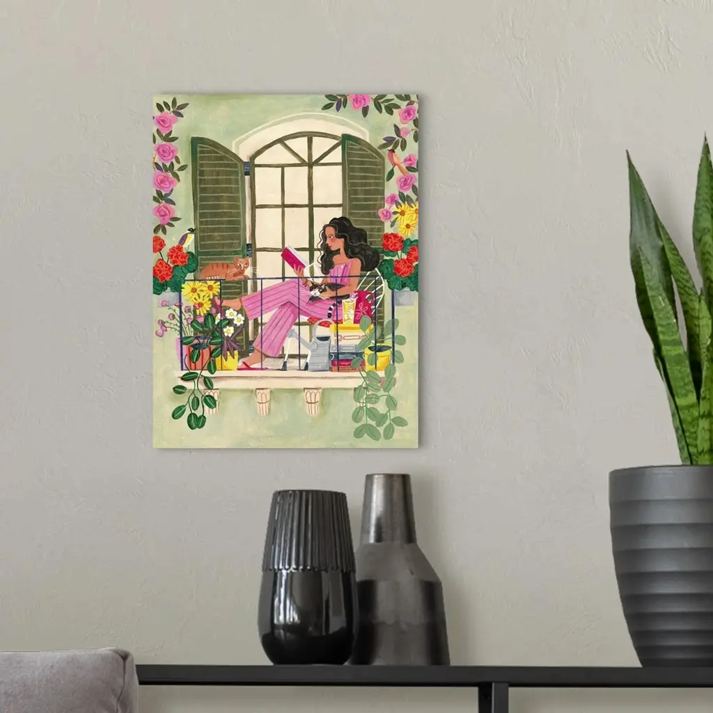 Woman Reads On Balcony wall art for home and office decor. Discover canvas art prints, photos, mural, big canvas art and framed wall art in GreatBigCanvas.com's varied collections.