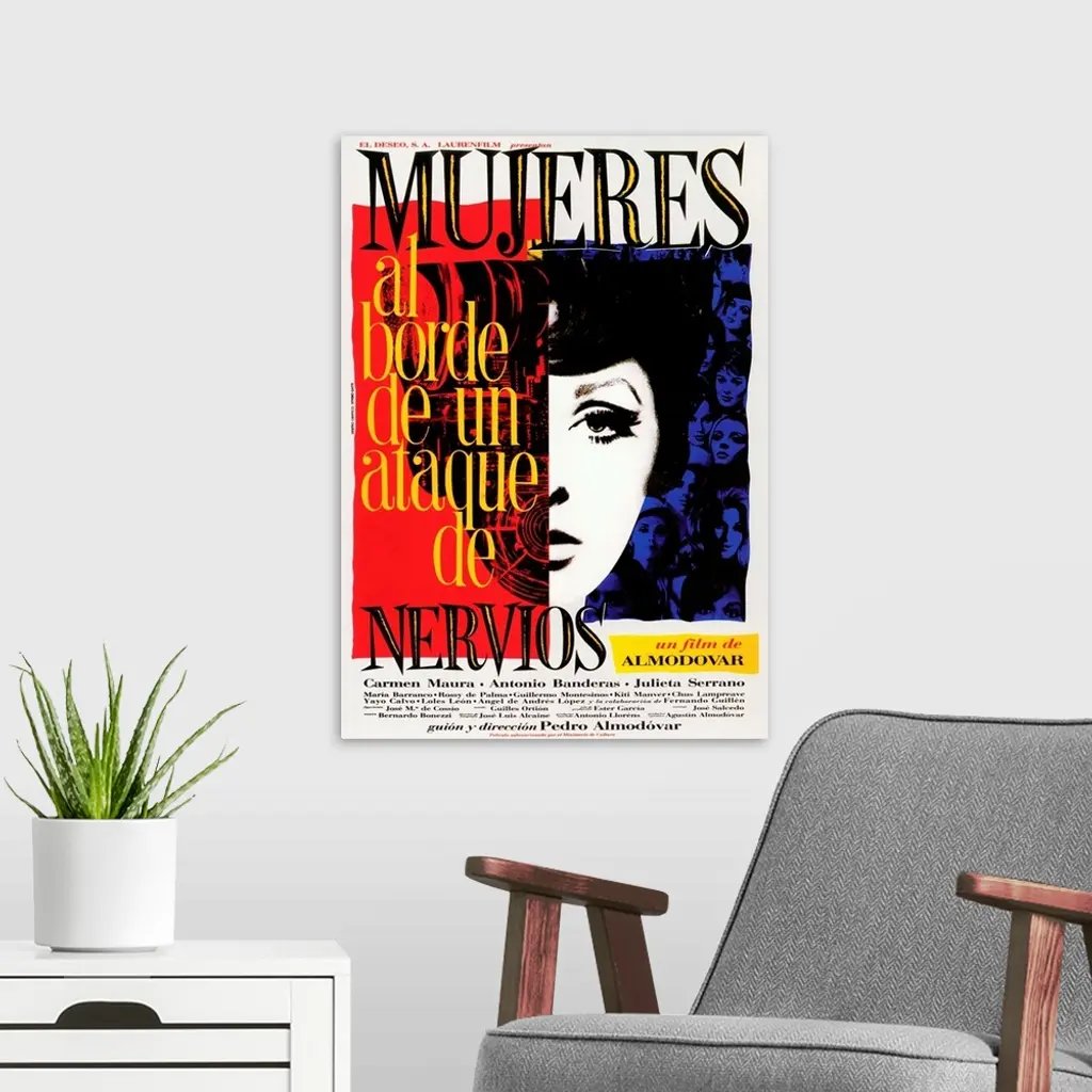 Surreal and hilarious romp through the lives of film dubber Maura, her ex-lover, his crazed wife, his new lover, his son, and his son's girlfriend. There's also Maura's friend Barranco, who inadvertantly lent her apartment to Shiite terrorists and now believes the police are after her as an accomplice in an airline hijacking. They meet in a comedy of errors, missed phone calls, and rental notices, while discovering the truth and necessity of love. Fast-paced and full of black humor, with loaded gazpacho serving as a key element. Introduced Almodovar to American audiences. In Spanish with English subtitles.