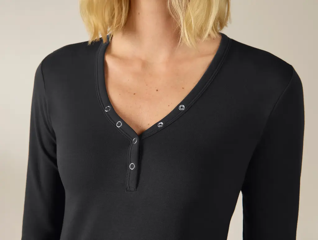 Crafted from 100% GOTS certified organic pima cotton, our Pima Organic Knit Henley delivers unmatched softness that only gets better over time. Long sleeves keep you warm, but the fabric’s natural breathability ensures you’re never too hot. Designed with a relaxed, comfortable fit so you can lounge in it, live in it, or even sleep in it. If in between sizes, we recommend sizing down.