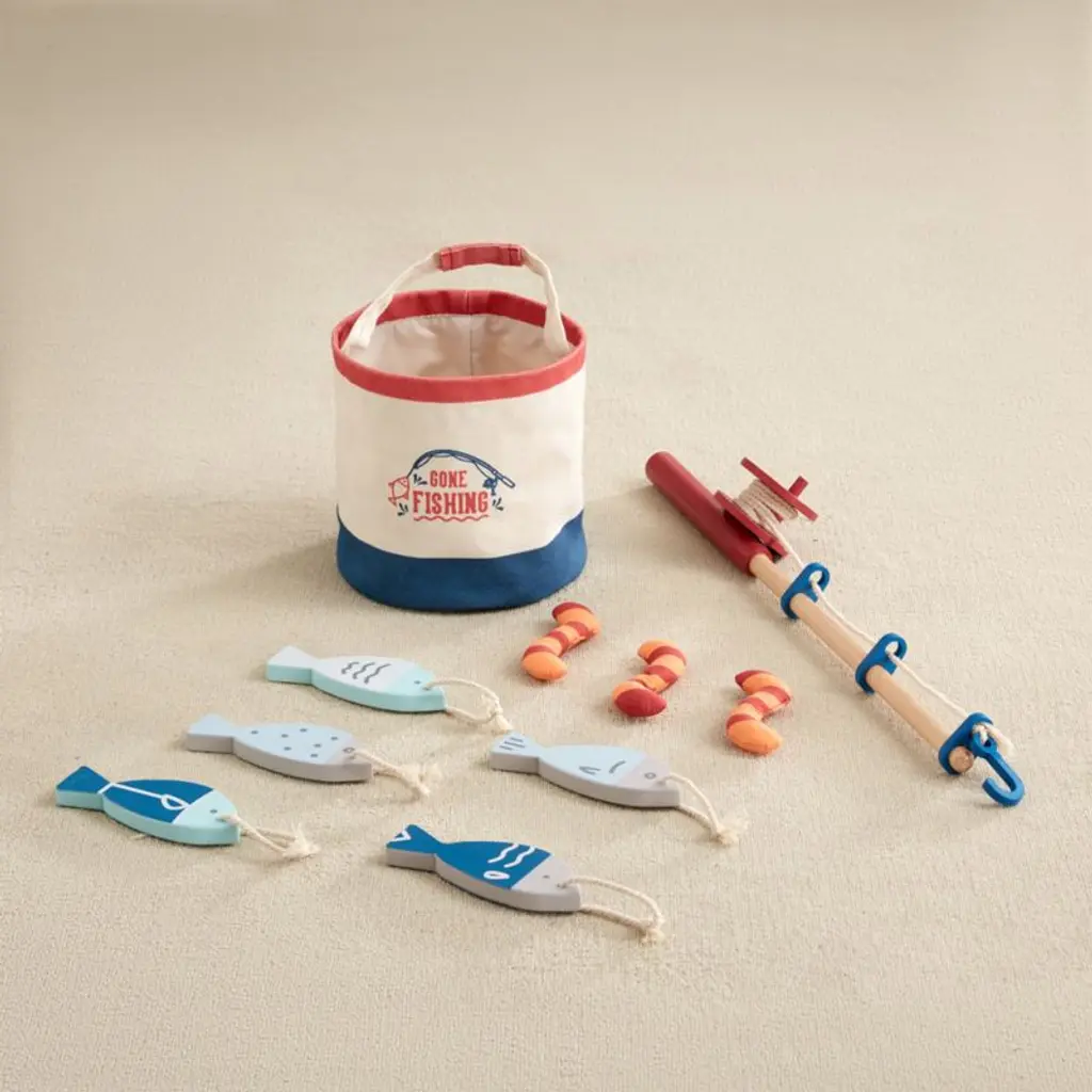 Reel in the fun! This Gone Fishing set from Wonder & Wise by Asweets includes a canvas bucket along with wooden fish and worms, plus a wooden fishing rod for toddlers to cast off into the "sea." Pair the toys with the Gone Fishing canvas boat (sold separately) for a full-on fishing expedition.