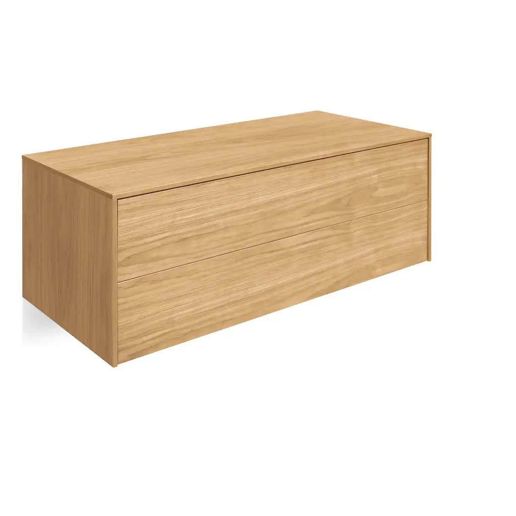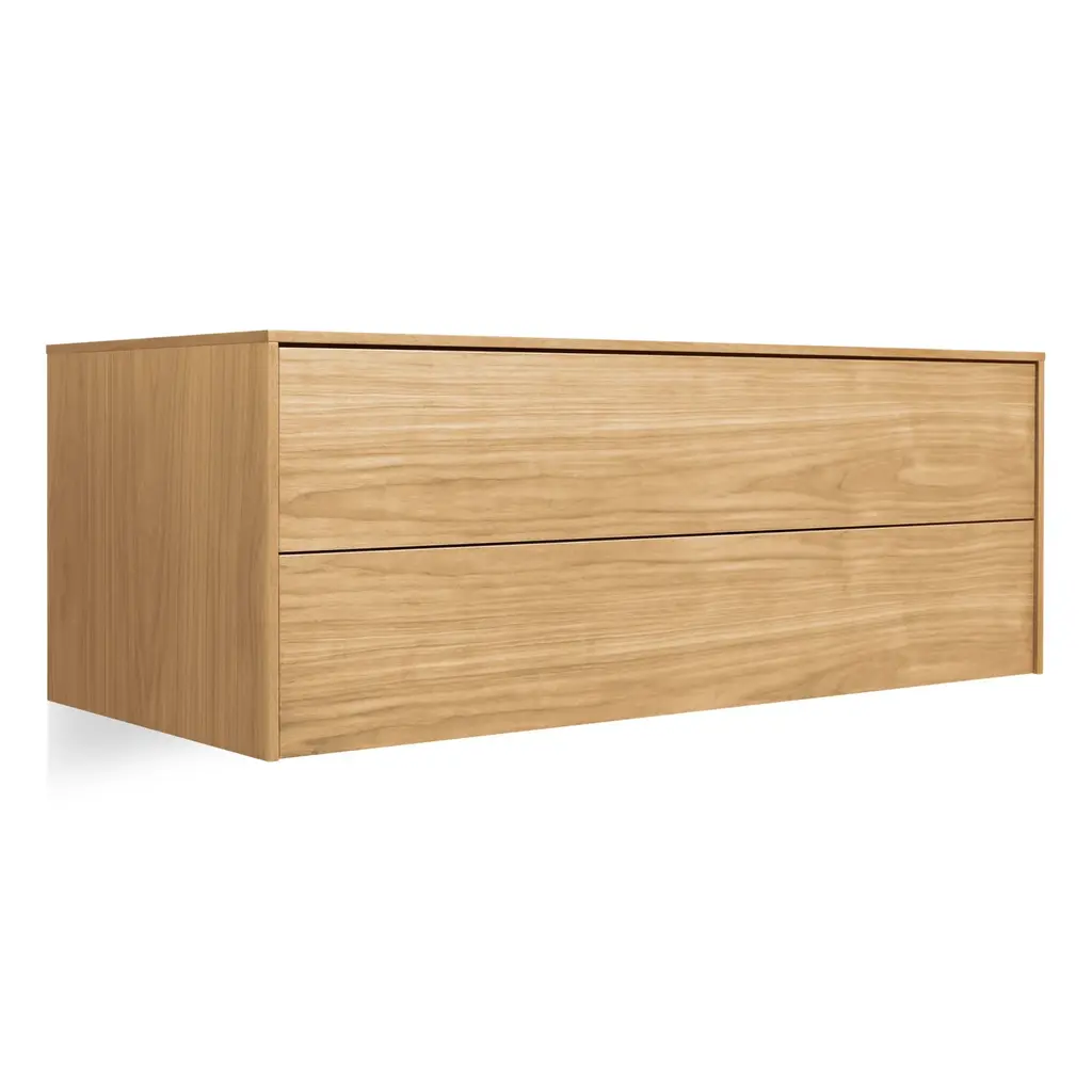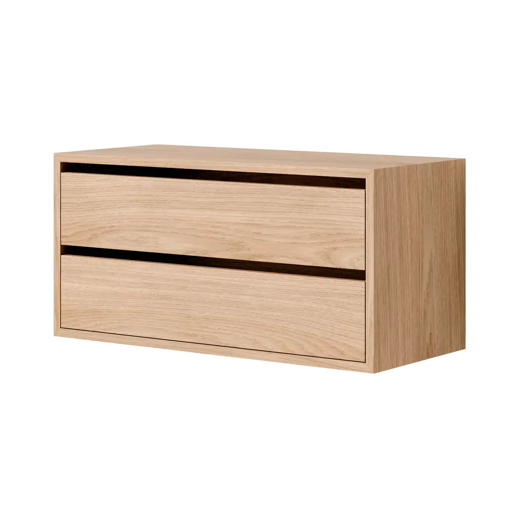 Wall-mounted two-drawer cabinet maximizes functional storage and provides a custom-looking solution without the hassle of finding someone to build it. In walnut or white oak with push latch drawers. Pair with companion door, desk and shelf units to create a full-on storage masterpiece.