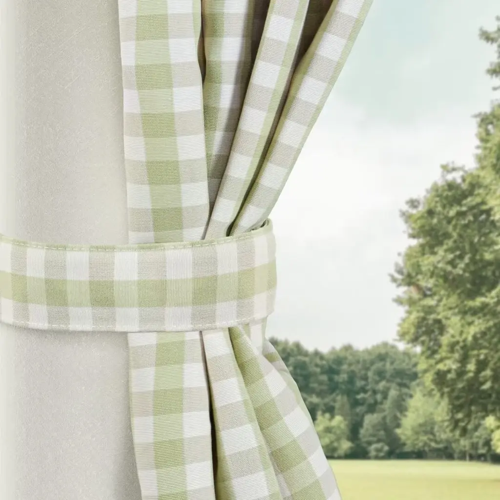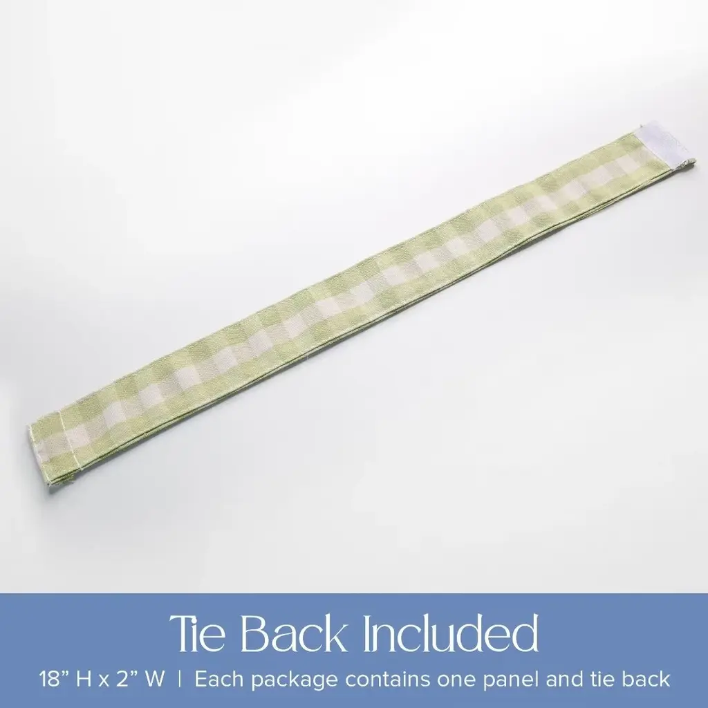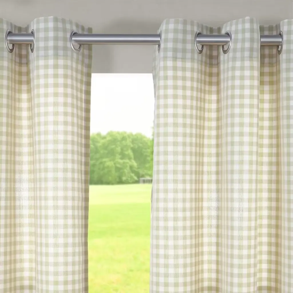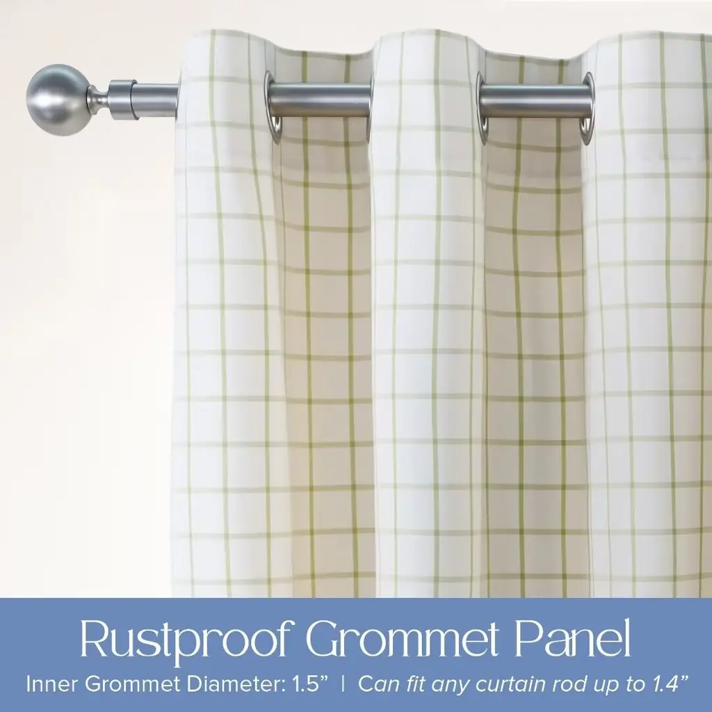 The Wonderland Collection Grid outdoor curtain is sold by 1 panel, and each panel includes a tieback. This grommet outdoor curtains will fit both indoor and outdoor living and great for sun blocking, glare reduction and privacy. These durable and water repellent panels will add the finishing touch to any gazebo, cabana, patio, deck, and beach house. Each panel is outfitted with a wind proofing mini grommet in the bottom 2 corners. Features: Dimensions: