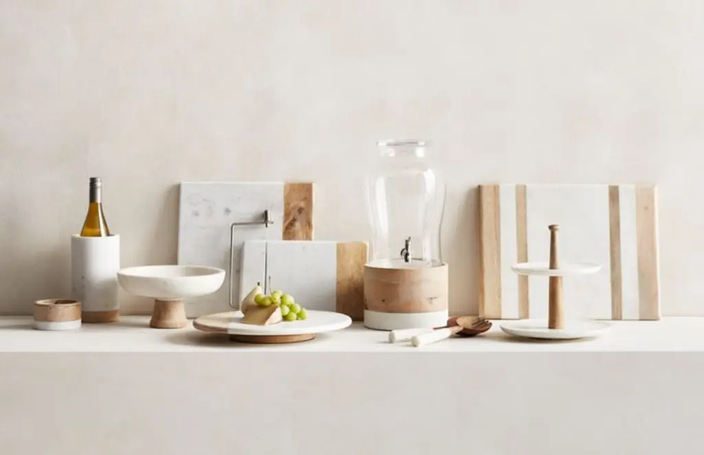 A great match with glass or wood serving bowls, this handsome set of servers mixes acacia wood heads with handles of faceted white marble. Our exclusive set serves salads and more with style and pairs beautifully with the rest of the entertaining and serving pieces in our wood and marble collection.By choosing FSC®-certified products, you are supporting responsible management of the world's forests.