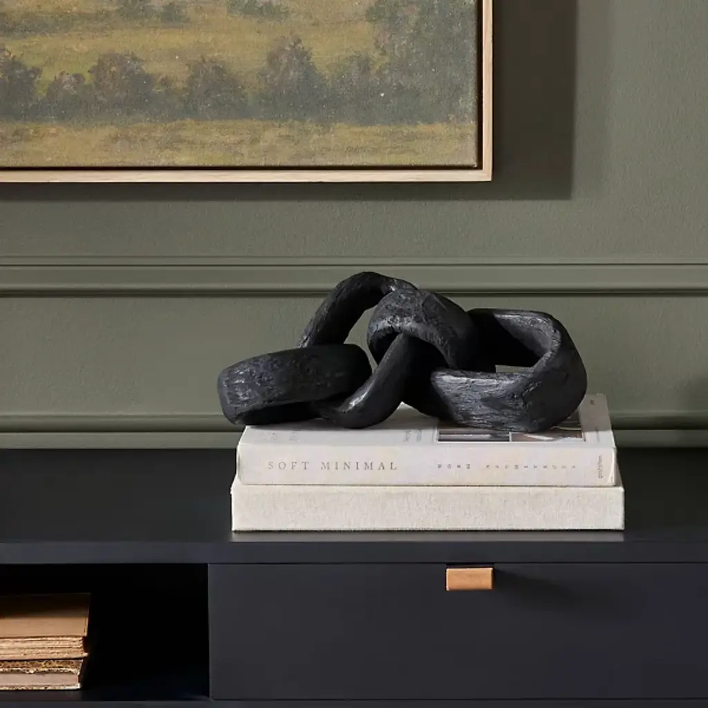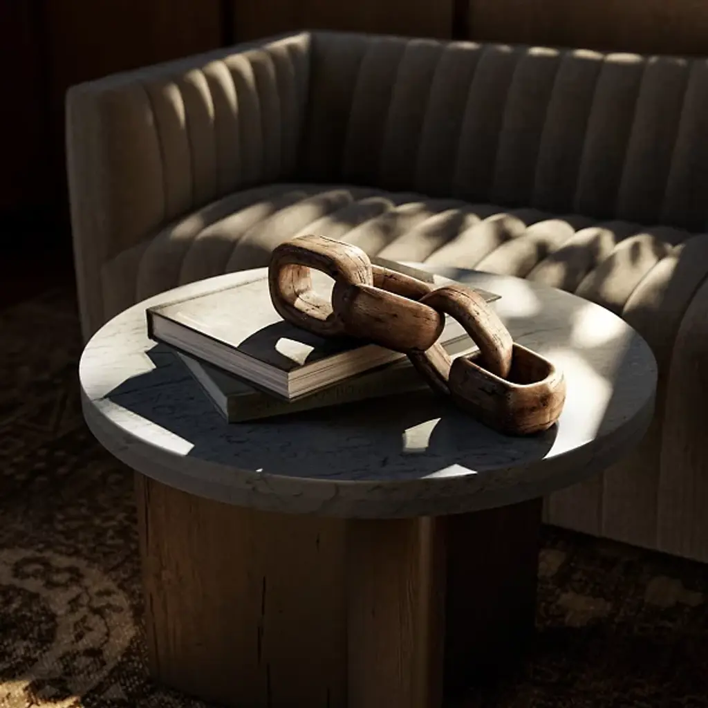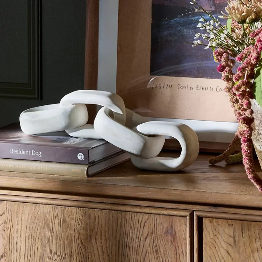 The Wood Chain from Four Hands adds a whimsical, earthy element to any room. The chain is made in Mexico out of solid mixed reclaimed wood, and each link is handcrafted to give it a unique texture and character. Whether draped on a table, shelf, or console, this decorative piece brings a natural, grounded feel and a hint of sculptural style to your space.