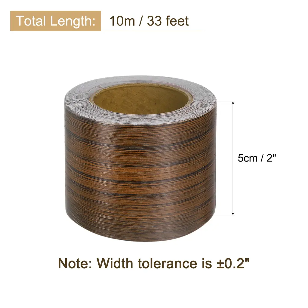 Advantage:Material - The wood grain repair tape is made of PVC material, waterproof, wear-resistant, and not easy to deform or fade. Whether you are fixing large floor cracks furniture scratches, renovate old furniture closets, simulation wood grain repair tape can fix it all.Easy To Use - Simply wipe the desired surface out with a cloth for easy cleanup. Then use scissors or a knife to cut the tape into the desired shape, Apply tape firmly and evenly on the surface. No adhesive will be left when the tape is removed.Wide Application - Different styles and color textures of wood tape can be used to baseboard repair, furniture renovation, cabinets, tables, and doors, floor repair, decorative projects, and daily DIY crafts.Specification:Material: PVCColor: WalnutLength: 10m/33 feetWidth: 5cm/2 inch(Width tolerance is ±1.5cm/0.6inch)Package Included: 1pcs x Wood Grain Repair Tape