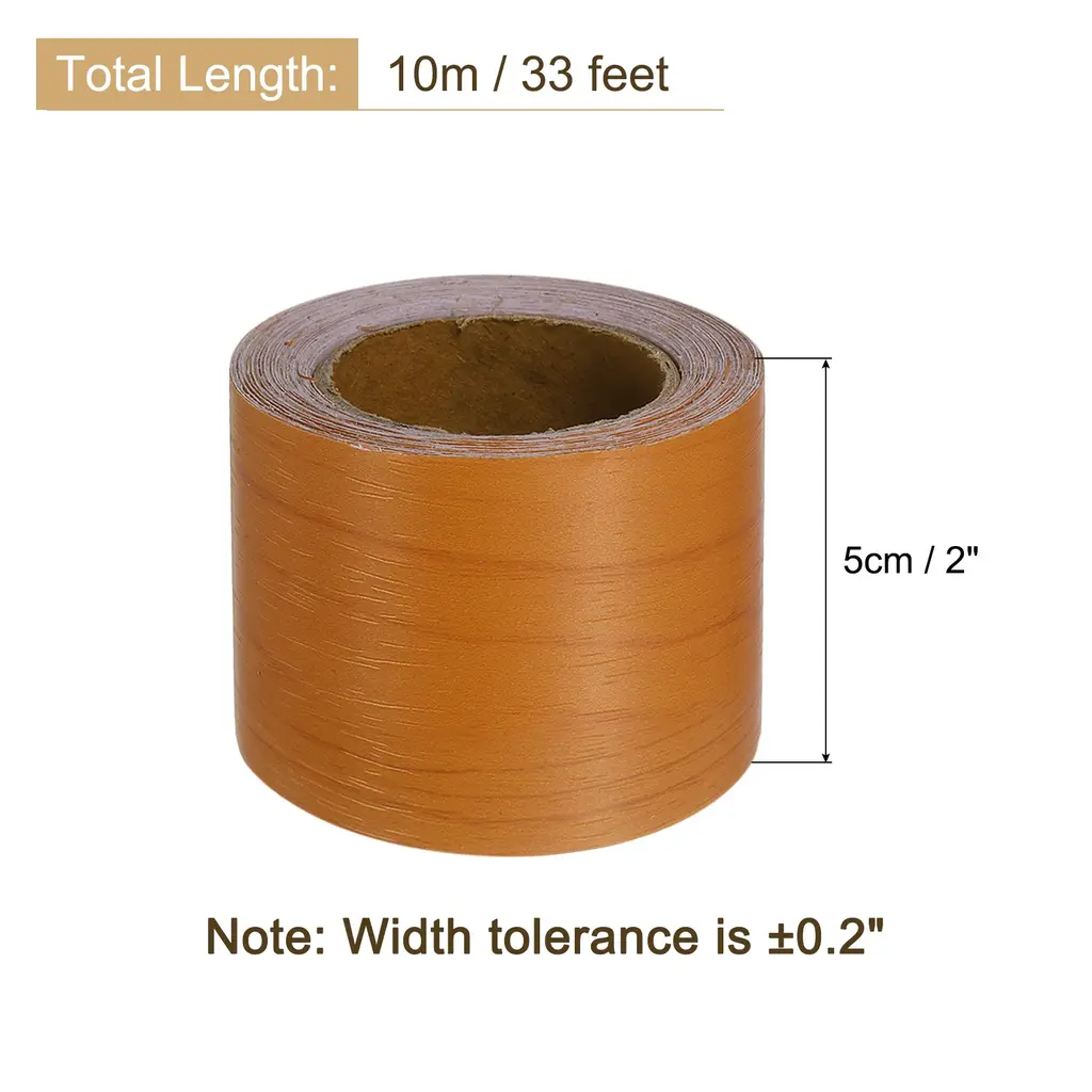 Advantage:Material - The wood grain repair tape is made of PVC material, waterproof, wear-resistant, and not easy to deform or fade. Whether you are fixing large floor cracks furniture scratches, renovate old furniture closets, simulation wood grain repair tape can fix it all.Easy To Use - Simply wipe the desired surface out with a cloth for easy cleanup. Then use scissors or a knife to cut the tape into the desired shape, Apply tape firmly and evenly on the surface. No adhesive will be left when the tape is removed.Wide Application - Different styles and color textures of wood tape can be used to baseboard repair, furniture renovation, cabinets, tables, and doors, floor repair, decorative projects, and daily DIY crafts.Specification:Material: PVCColor: WalnutLength: 10m/33 feetWidth: 5cm/2 inch(Width tolerance is ±1.5cm/0.6inch)Package Included: 1pcs x Wood Grain Repair Tape