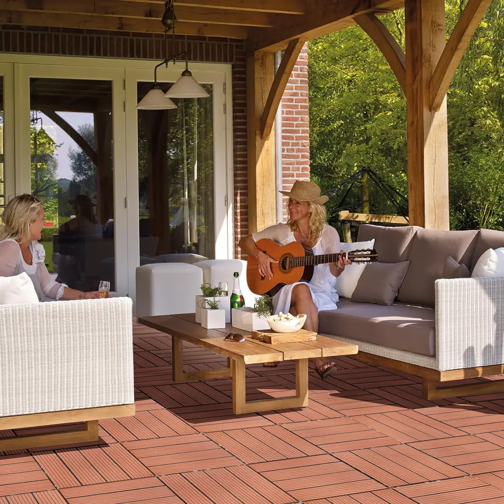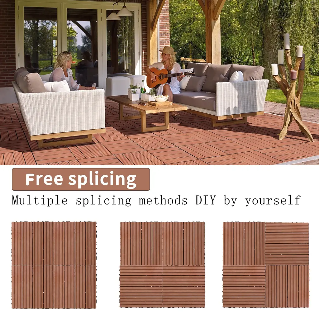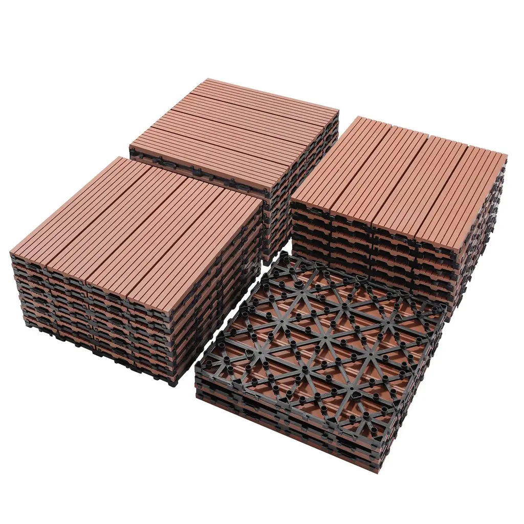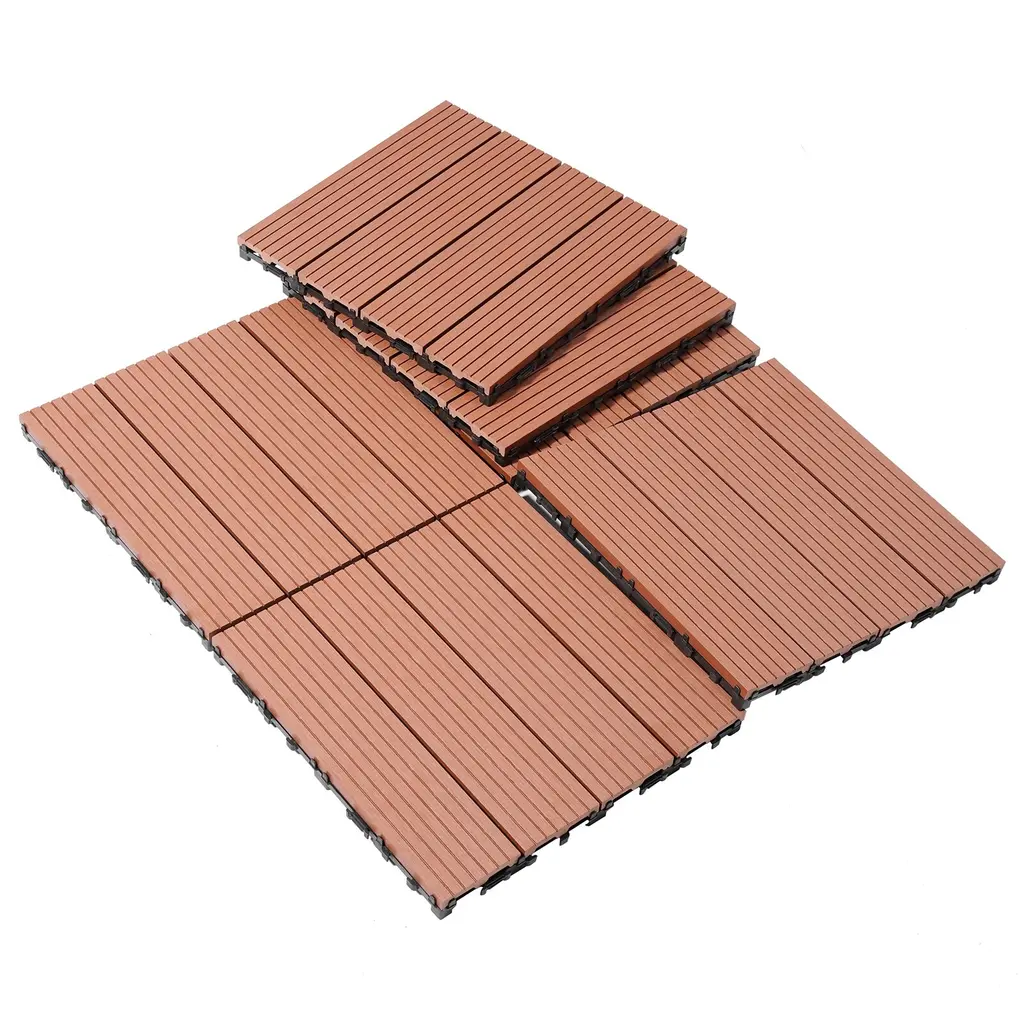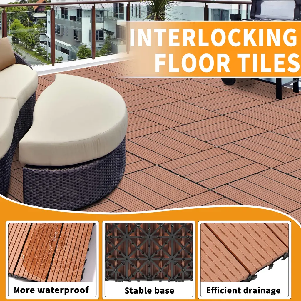 Wood Plastic Composite Deck Tiles 20 Pack Sustainable Composite Decking 12" Patio Deck Tiles For Patios Balconies Poolside - Brown