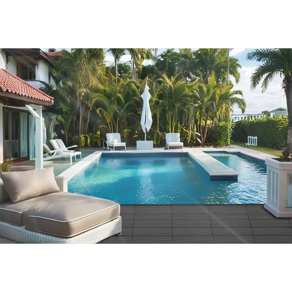 Wood Plastic Composite Deck Tiles Set Of 20, Diy Interlocking, Waterproof & Weather-Resistant, 12x12in, For Patios & Balconies - Grey