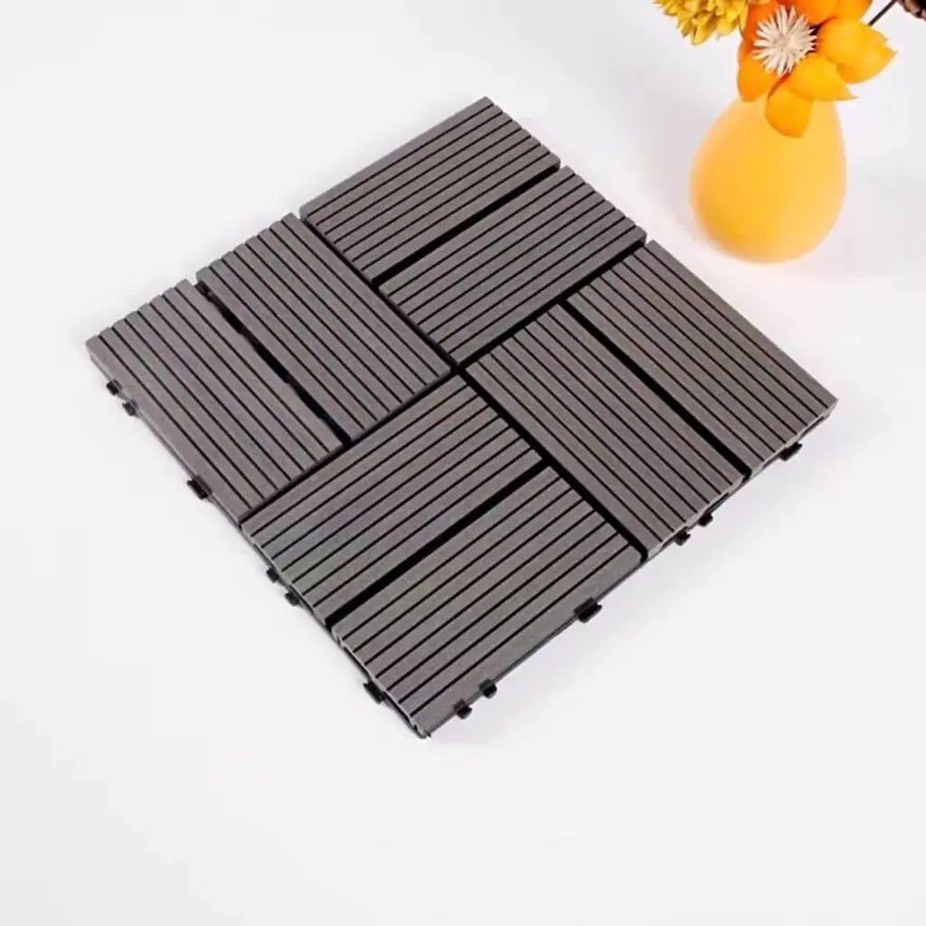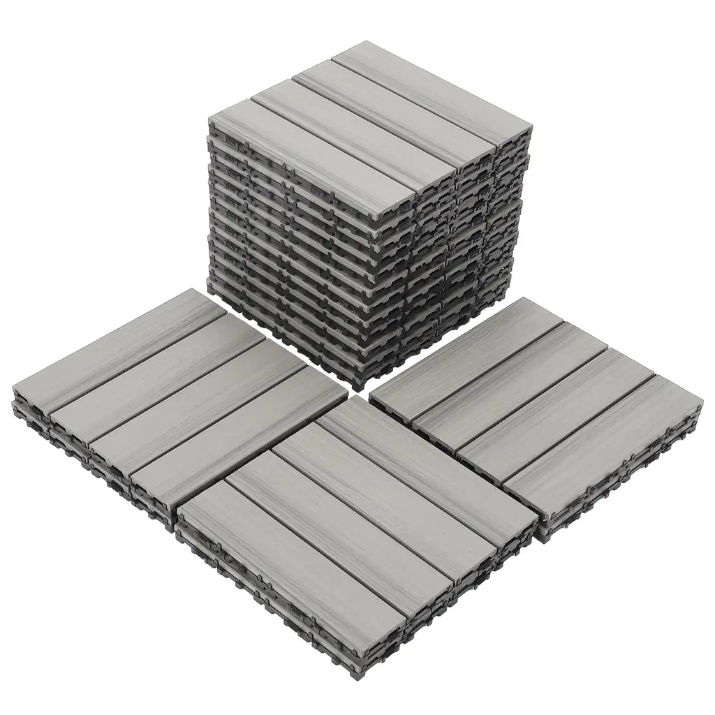 Wood Plastic Composite Deck Tiles Set Of 20pcs, Composite Decking Resist Rust,diy Interlocking Decking Tiles,12x12in - Dark Grey