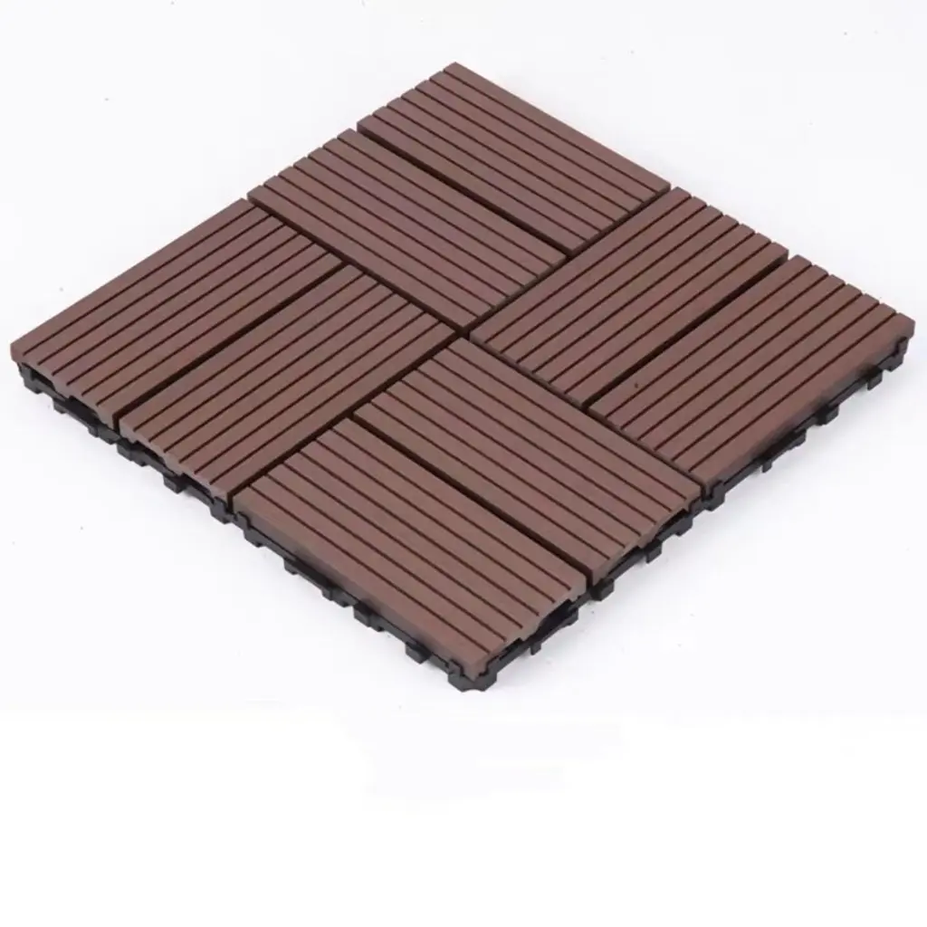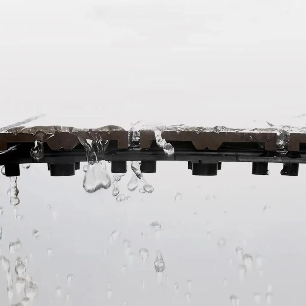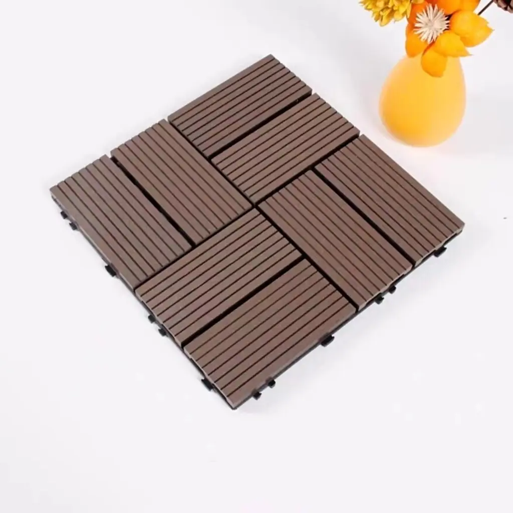 Easy to Install: These deck flooring tiles have an interlocking design base for easy do-it-yourself installation and no tools required for installation.No messy glue, no nails, perfect match and precision spacing between every tile.Unique Design:Our wooden tiles has a simple, beautiful design that can be used indoors and outdoors,8 slats per tile,there is a small gap between each slats for better drainage.Indoor & Outdoor Use: The interlocking deck tiles has PP platform base allows for adequate drainage and moisture, Great for decks, patios, balconies, around pools, saunas, showers, sun rooms, mud rooms, bedrooms, and more.High Quality:Our wood flooring tiles are made of wood-plastic composites. Wood-plastic composite material makes superior water resistance compared to natural wood, resistant to swelling or decay, slip resistant. Super durability and fade resistance.It is eco-friendly product for your home to create a beautiful space both inside and outside.