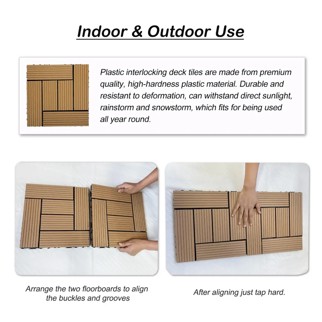 Wood Plastic Composite Deck Tiles Set Of 20pcs, Diy Interlocking Decking Tiles, Waterproof, Weather-Resistant, 12x12" - Wood