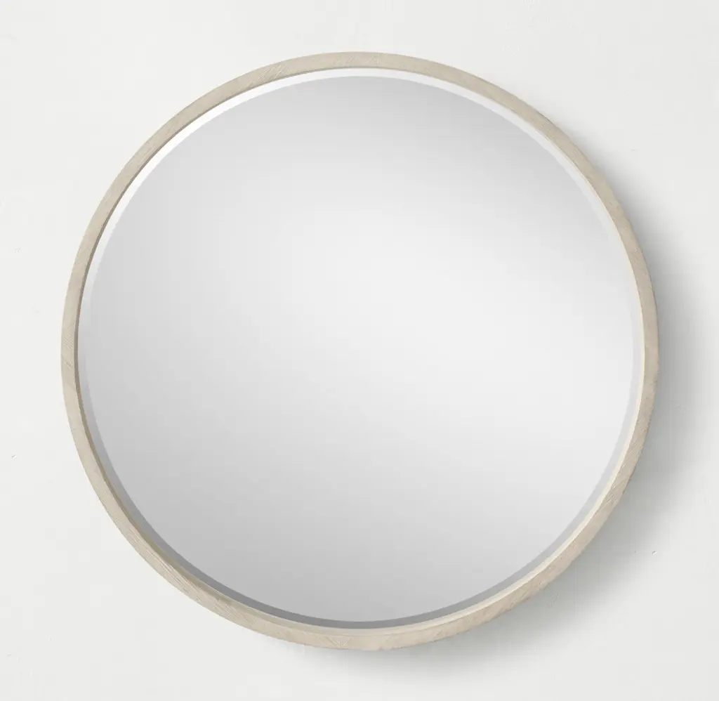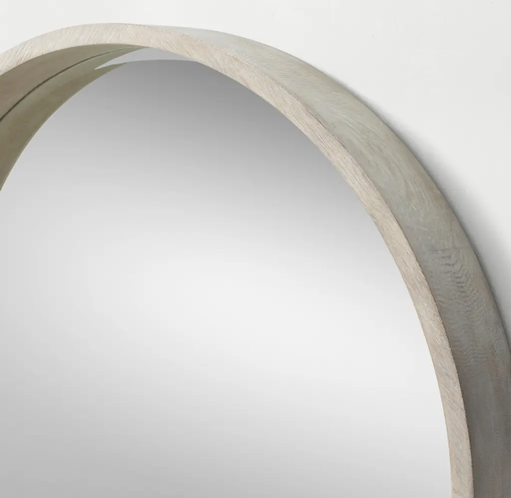 Wood Shadow-Box Round Mirror - Whitewashed Oak