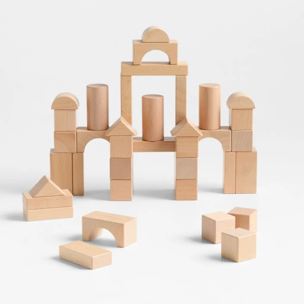Wooden Blocks - 100 Pc Wood Building Block Set with Carrying Bag and Container (Natural Colored) - 100% Real Wood