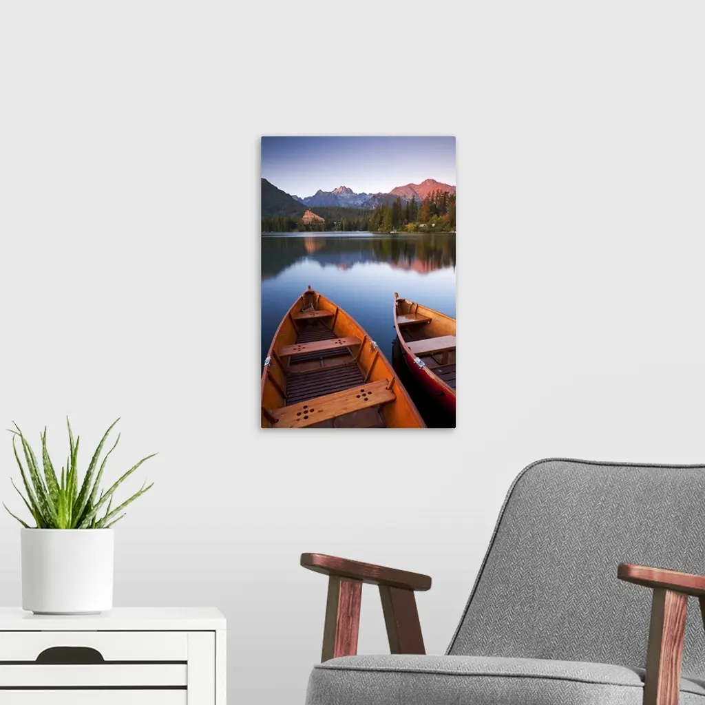 Wooden Boats On Strbske Pleso Lake In The Tatra Mountains Of Slovakia