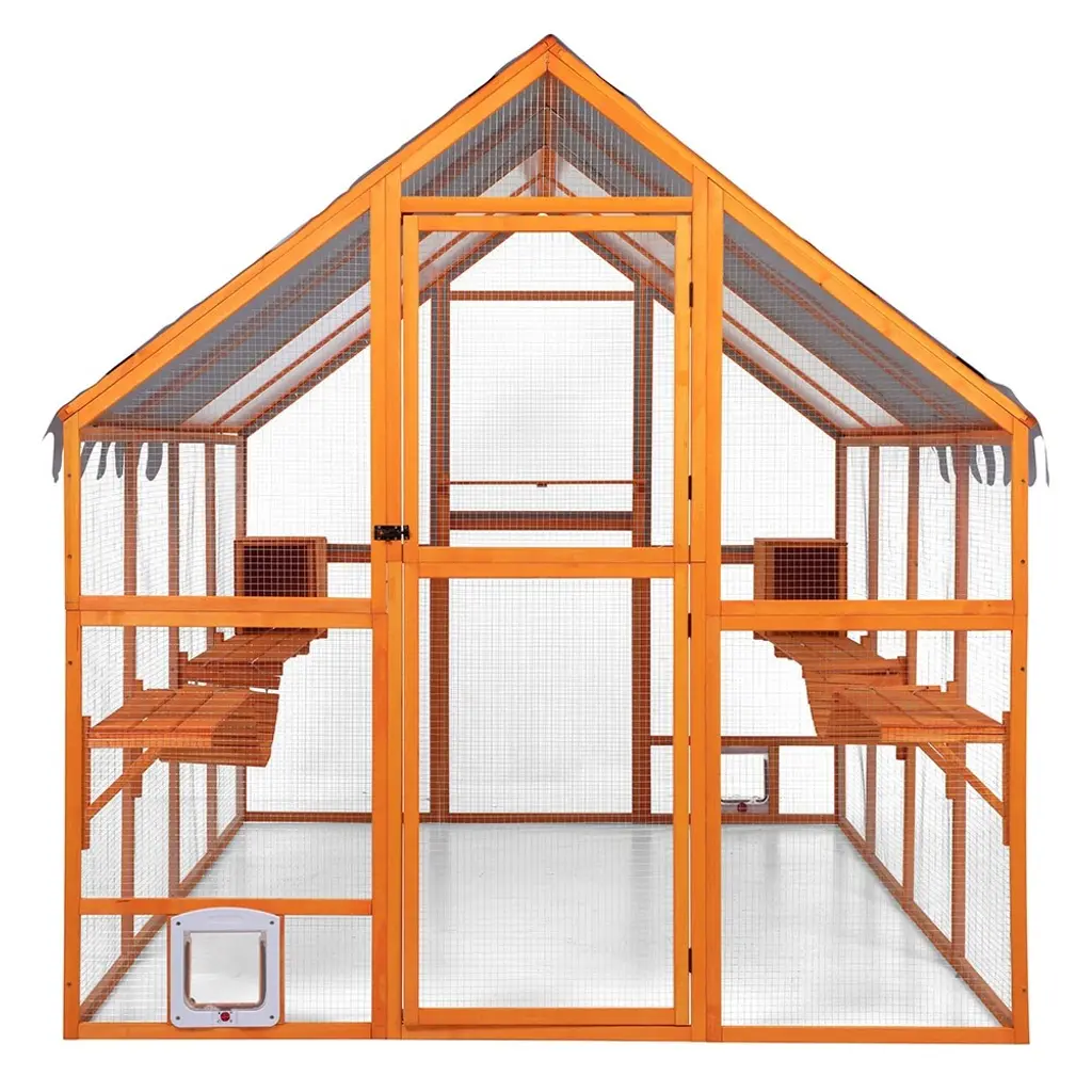 Wooden Cat Cage, Outdoor Large Cat Playpen With Platforms - Orange