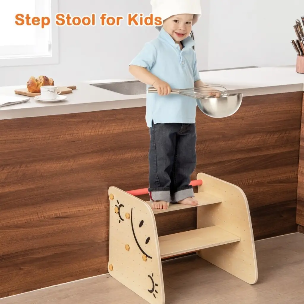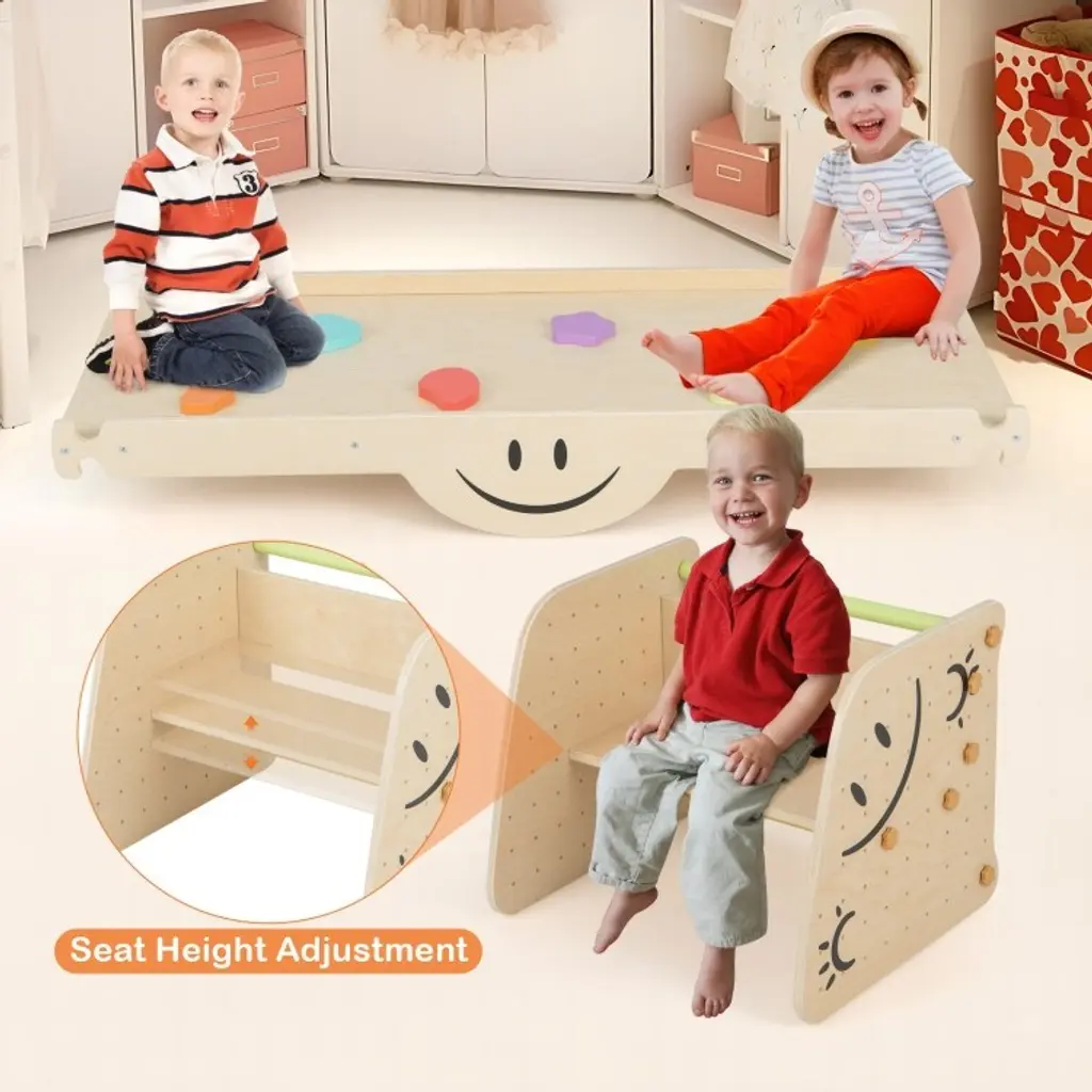 Specification: Color ColorfulMaterial Pine Wood + PlywoodDimension of the Step Stool 21" x 19" x 17.5"Dimension of the Ramp 47" x 19.5"Applicable Age 3 + Years OldTotal Weight Capacity 135 lbsNet Weight 27 lbsDescription: -Combine seesaw stool with back climbing ramp sliding ramp climbing ladder step stool for kids-Adjustable height for different fun to accommodate your child's growth-Cultivate adventurous spirit inspire self-confidence and more-Stable triangular structure greatly reinforces the climbing set-High-quality natural wood bars for durability and long-lasting use-ASTM and CPSIA certifications for utmost safety and peace of mind.-Colorful cute rocks add visual appeal and improve sophistication-Designed with smooth and burr-free surface round edges secured joints-Considerate seat height adjustment to suit different children Installation guide