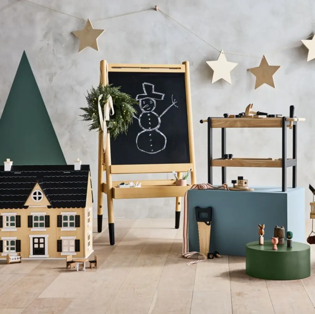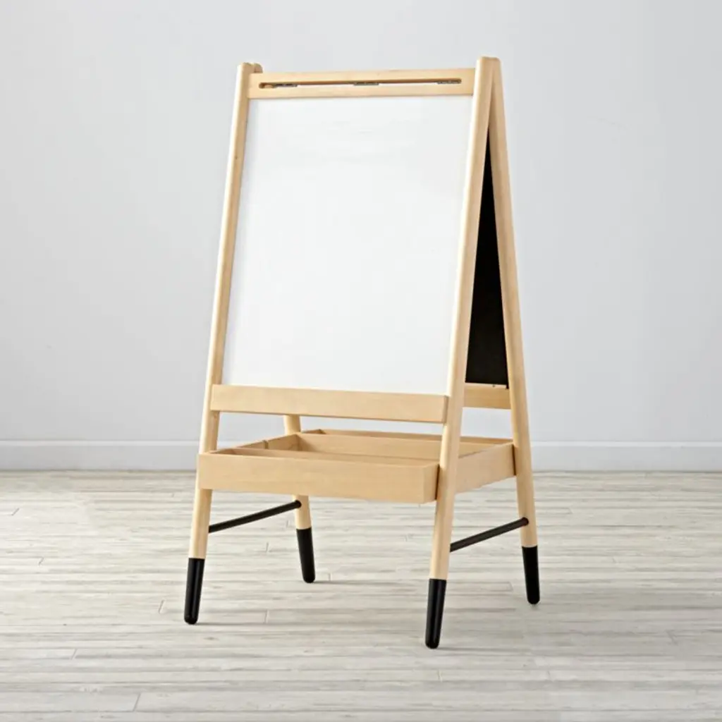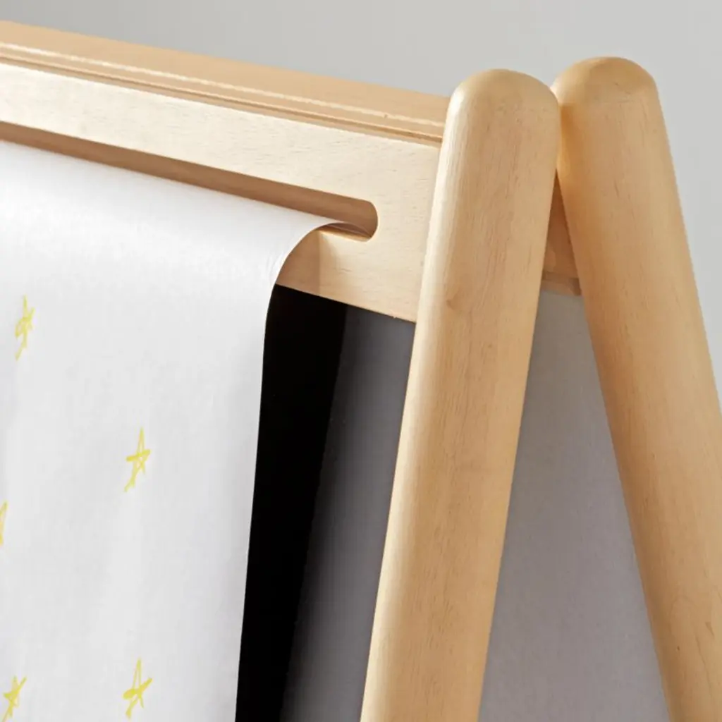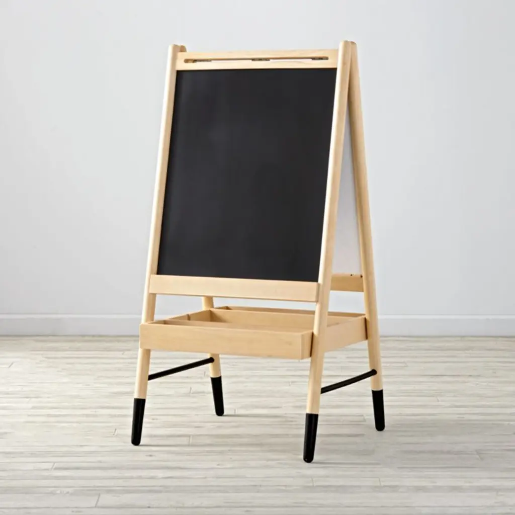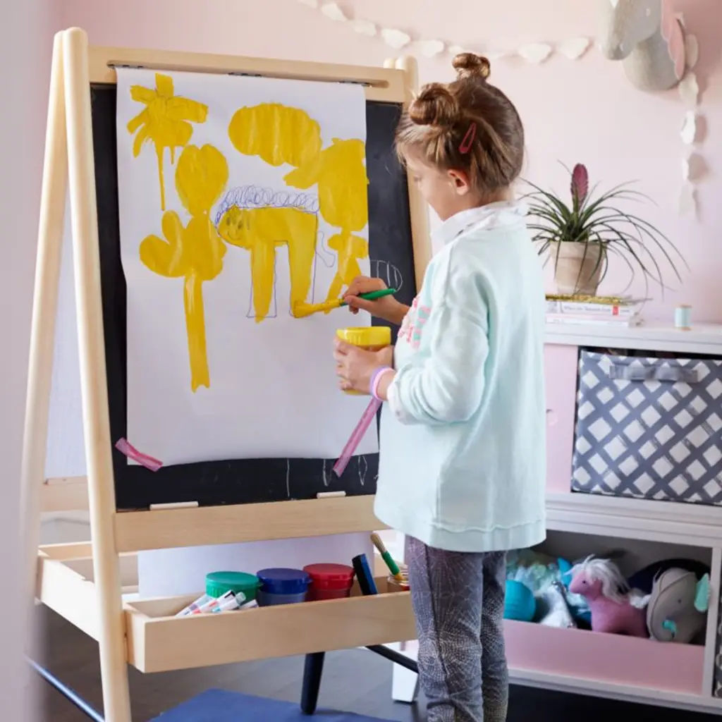 Perfect for the little artist in your life, our Wooden Art Easel gives kids three ways to get creative. One side of the easel is a chalkboard, the reverse is a whiteboard, and up top, there's a slot for adding a paper roll. Plus, down below there are handy storage trays to hold all those arts and crafts supplies. Featuring sturdy natural rubberwood construction with black-tipped feet for a cool, contrasting detail, it's like having an instant kids art studio (right at home).Need a place to display your kids' favorite artwork, wall art and family photos? Learn more about creating a gallery wall.