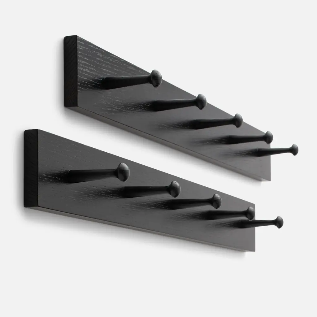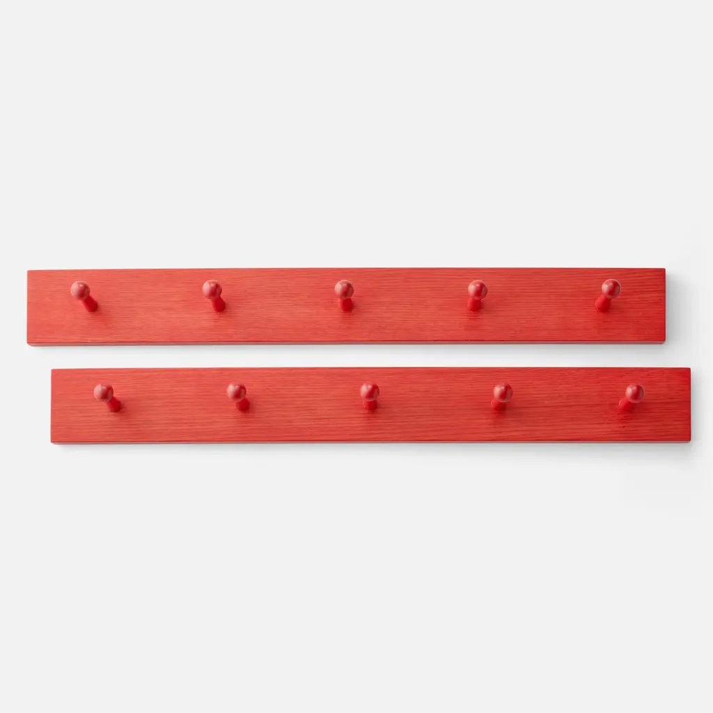 A model of functional beauty, the 5 Hook Peg Rail's uncluttered design blends well in a variety of environments. Clean lines and a minimal profile make it great for hanging side by side for additional storage or at multiple heights for kids and adults. Made from locally sourced solid maple and oak, it features five rounded pegs and two keyholes for mounting. Crafted by a small, family-owned company in the foothills of Pennsylvania's Allegheny Mountains.