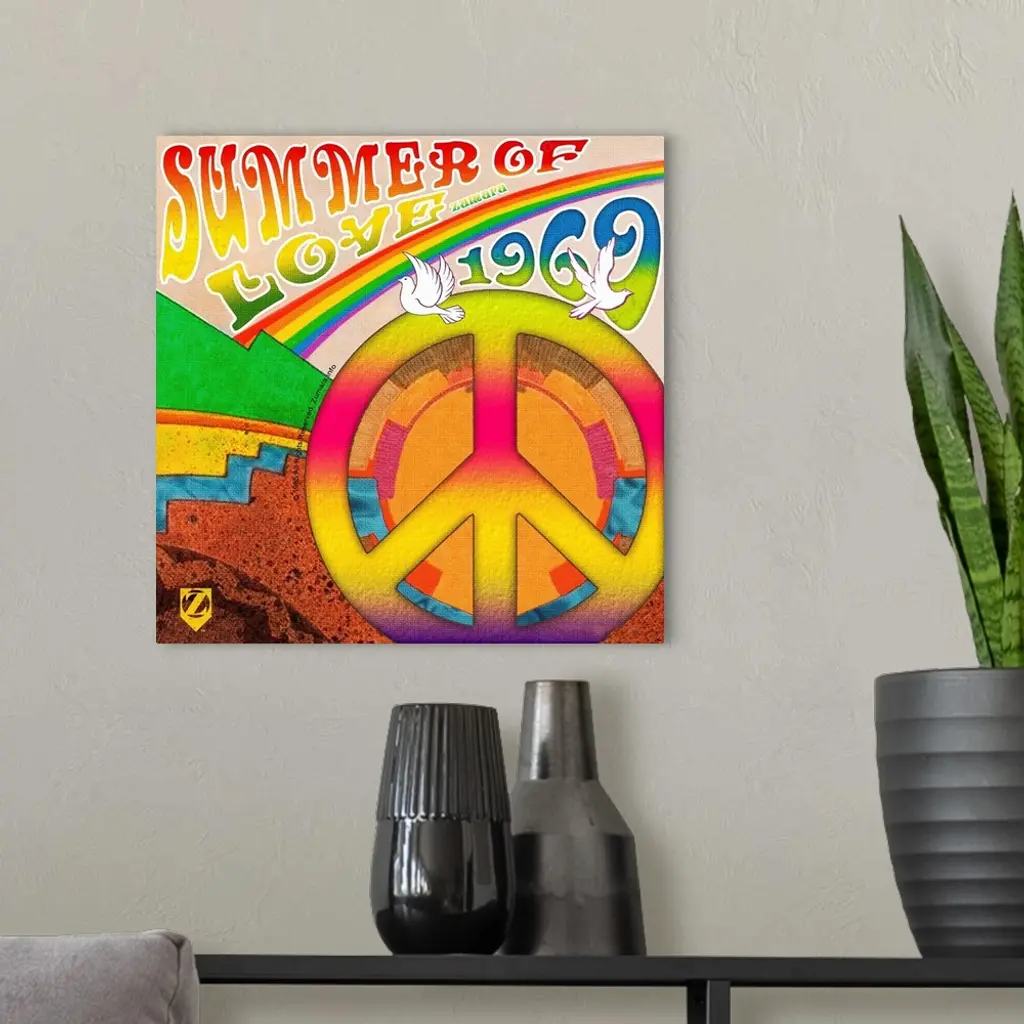Woodstock Summer of Love Rainbow wall art for home and office decor. Discover canvas art prints, photos, mural, big canvas art and framed wall art in GreatBigCanvas.com's varied collections.