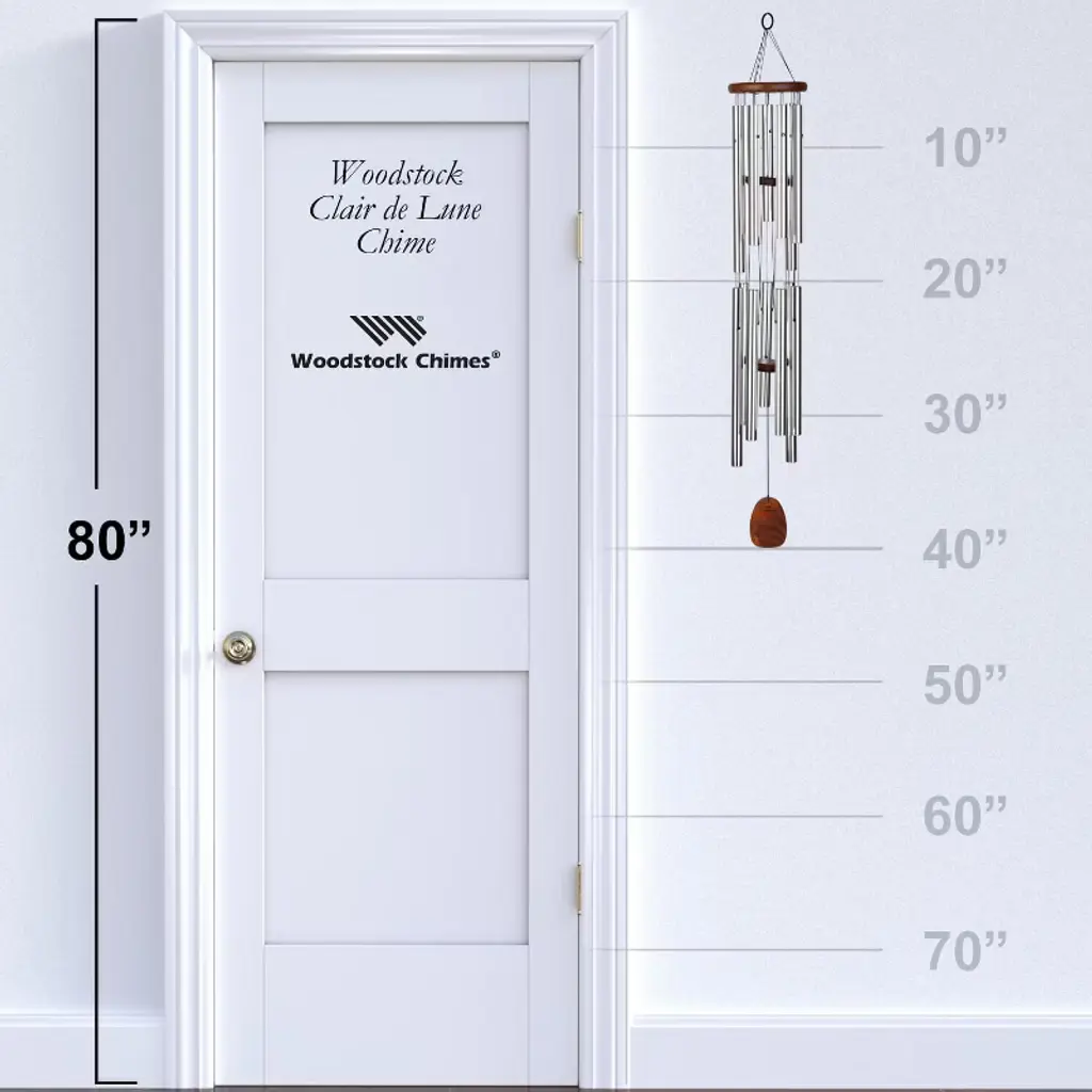 This chime is tuned to the opening phrase of Clair de Lune a distinctive melody made up of seven two-note chords. To replicate this the chime was designed with two different sized clappers so both the upper and lower tubes are struck at the same time. In this way it plays “double stops †or two notes at one time. Clair de Lune translates to “Light of the Moon†or “Moonlight†and is the third movement of the Suite bergamasque one of the most famous piano suites composed by Claude Debussy. First written around 1890 when Debussy was only 28 this melody was used for the Bellagio Fountain scene at the end of Ocean’s Eleven. A true original there’s no other windchime designed to play chords in this way. WOODSTOCK CHIMES THE ORIGINAL MUSICALLY TUNED WIND CHIMES. Tuned to beautiful melodies and scales from around the world and available in a wide range of styles songs and sizes you can choose the Woodstock Chime that speaks to your soul. HOW IT ALL BEGAN. In 1979 the first Woodstock Chime was created by GRAMMY® Award-winning musician Garry Kvistad from an aluminum lawn chair he found in a landfill. As a professional musician and instrument designer he was fascinated by the Scales of Olympus a 7th century pentatonic scale that can't be played on a modern piano. Garry had the idea to cut and tune the lawn chair chime tubes to the exact frequency of the ancient scale. The resulting Chimes of Olympus was the first Woodstock Chimes Wind Chimes and is still one of our bestselling wind chimes. Garry and his wife Diane founded Woodstock Chimes in 1979 and it remains based in New York's Hudson Valley.