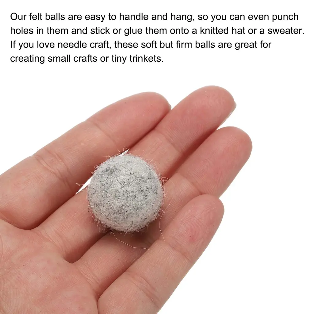What is this?These wool felt pom balls are made of wool fabric, great for handmade gifts, DIY flowers and trees, Halloween decorations, and Christmas decorations.What will I get?The wool felt ball, we provide here, is in size of: Diameter: 2cm/0.79 InchIn the package of 10 x wool felt ballAre there any advantages of the product?Our felt pom balls are easy to handle and hang, so you can even punch holes in them and stick or glue them onto a knitted hat or a sweater. If you love needle craft, these soft but firm balls are great for creating small crafts or tiny trinkets.How to use?These craft felt pom balls are easy to use and hold up to gluing or punching with holes, so you can enjoy felting projects.What should I notice?The size is measured by manual, please allow the error +/-0.1 inch before purchasing.