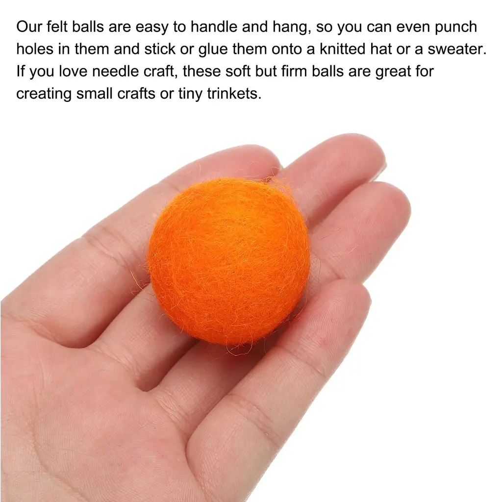 What is this?These wool felt pom balls are made of wool fabric, great for handmade gifts, DIY flowers and trees, Halloween decorations, and Christmas decorations.What will I get?The wool felt ball, we provide here, is in size of: Diameter: 3cm/1.18 InchIn the package of 20 x wool felt ballAre there any advantages of the product?Our felt pom balls are easy to handle and hang, so you can even punch holes in them and stick or glue them onto a knitted hat or a sweater. If you love needle craft, these soft but firm balls are great for creating small crafts or tiny trinkets.How to use?These craft felt pom balls are easy to use and hold up to gluing or punching with holes, so you can enjoy felting projects.What should I notice?The size is measured by manual, please allow the error +/-0.1 inch before purchasing.