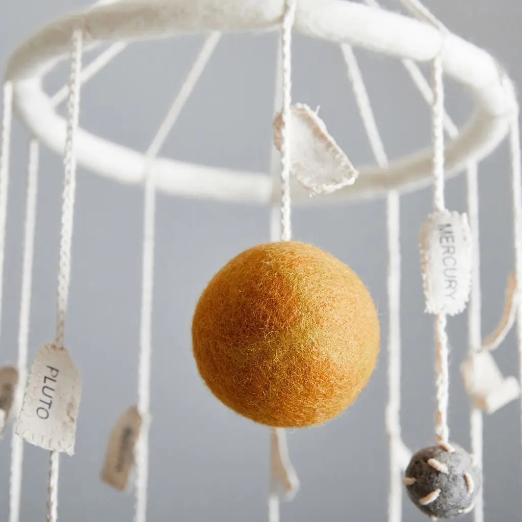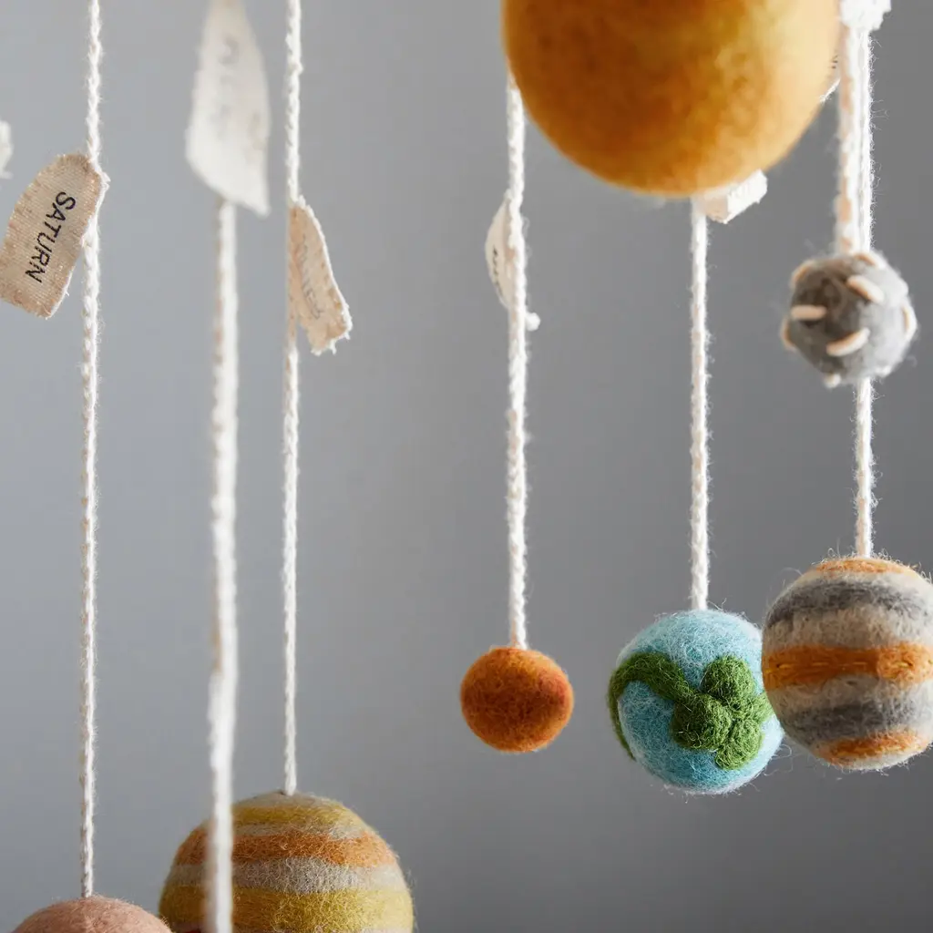 This felt mobile artfully displays the planets and sun in brightly colored, handcrafted felt. It's brought to you in collaboration with Pottery Barn Kids and made in a Fair Trade Certified™ facility in Nepal, directly improving the lives of the workers who make it.