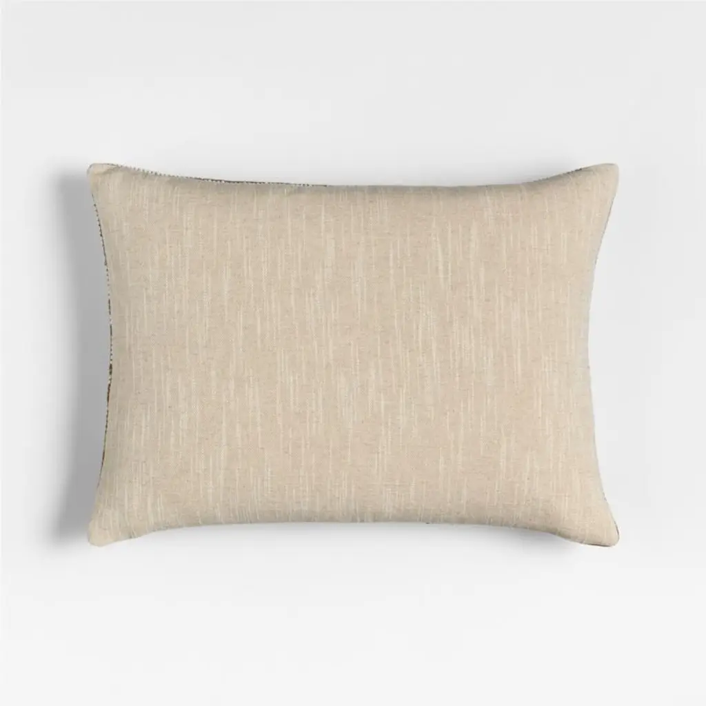 We wanted a plaid pillow that would work year-round, and this one suits all seasons. Woven of a linen-wool blend that's cozy and nubby without being wintry, each asymmetrical quadrant reverses its dark and light hues for a dynamic take on a classic pattern. To complete the versatile look, our lumbar throw pillow includes your choice of a plush feather-down or lofty down-alternative insert.