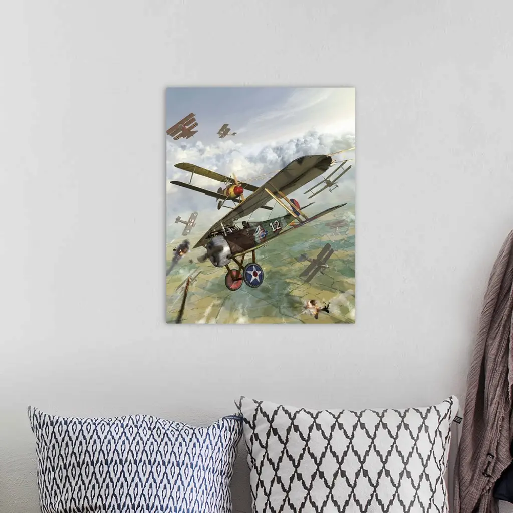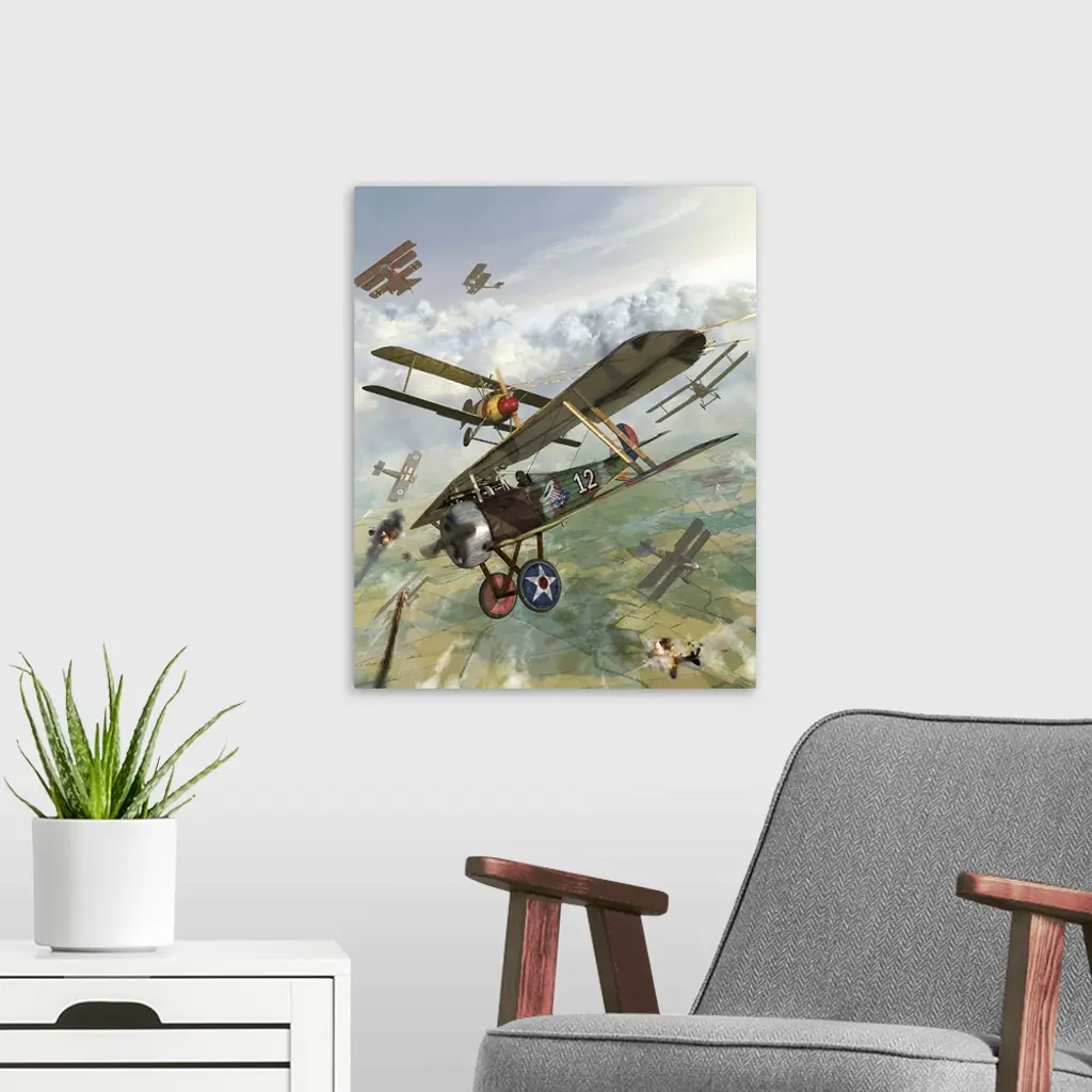 World War I U.s. Bi-Plane Attacking German Bi-Planes