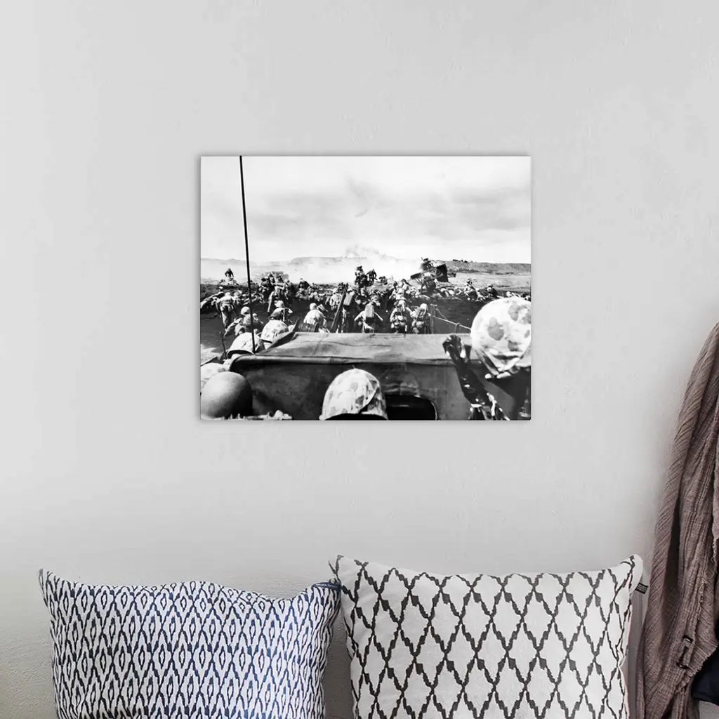 U.S. Marines landing on a beach during the 'island-hopping' campaign of the Pacific Theater, World War II. Photographed c1942-45.