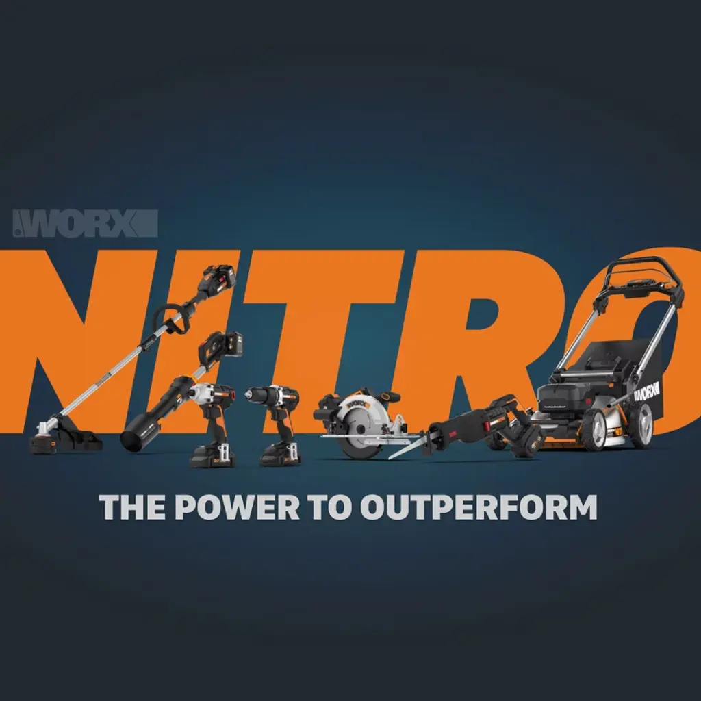 The Worx Nitro WG753 40V Power Share Cordless 21" Self-Propelled Lawn Mower with Rear Wheel Drive and 2X 5.0Ah Batteries has a highly-efficient brushless motor running 50% longer, churning out 25% more power, and providing 10% more life than brushed motors. With two high-capacity Power Share PRO batteries, this self-propelled mower is a worthy replacement to gas mowers. And does so without any of the drawbacks of gas, like the cost, mess, fumes, excessive volume, or extra maintenance. Full of quality-of-life features, like rear-wheel drive with a variable-speed control so the user can pick a pace that’s comfortable for them. Single-lever height adjustments and mode changes make switching between cutting heights (7-positions, 1.6 in.-4 in.) and cutting modes (bag/mulch/side-discharge) quick and easy. LED lights provide greater visibility when mowing at dusk or in other low-light conditions. Auto-Intellicut™ technology increases the speed of the blades when it detects thicker grass, then slows them back down when the mowing gets easier to conserve battery usage. And the one-touch fully-collapsible handle makes for compact, stand-up storage in the garage. The bag capacity is 2 Bushels, the wheels are 8 in. (front) and 10 in. (rear). The durable steel cutting deck is a wide 21 in. (20 in. cutting width) and great for lawns with rough terrain, and features Nutricut™ dual-stage mulching capabilities to return both water and nutrients back to your lawn.