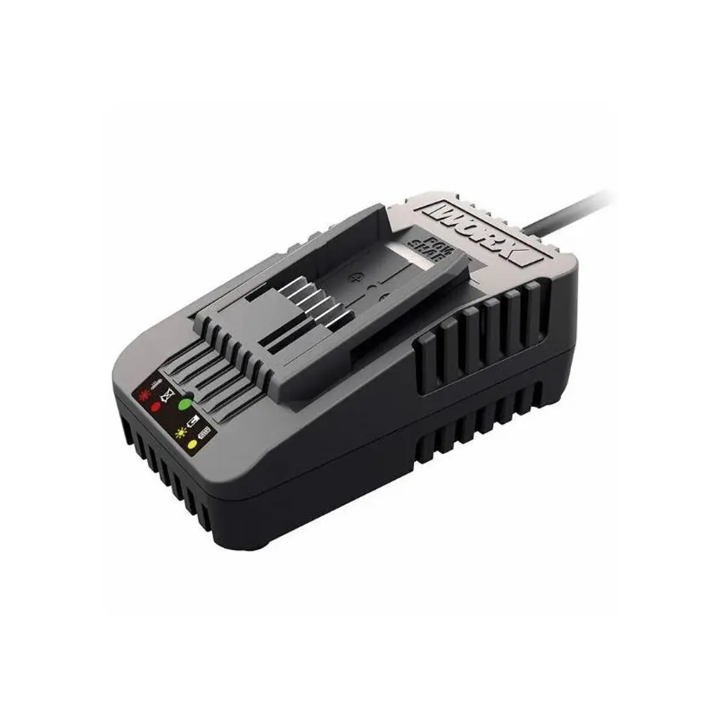 You can run your entire Worx PowerShare collection of tools on this one 20V 2.0 Ah Max Lithium-Ion Battery. String trimmers and impact drivers, circular saws and lawnmowers, Hydroshots and leaf blowers, the list goes on and on. These batteries are lighter, which makes the tool lighter, and more efficient, than rechargeable batteries based on older designs. Max L-ion batteries don’t wane or drain, and won’t suffer from the memory effect that prevented last generation’s batteries from fully charging as they got older. Plus, they just last longer, so they’ll save you money. Some chargers take up to 5 hours. Not this one. Get back in the game fast when you run out of juice and charge your 20V 2.0Ah batteries in just an hour.
