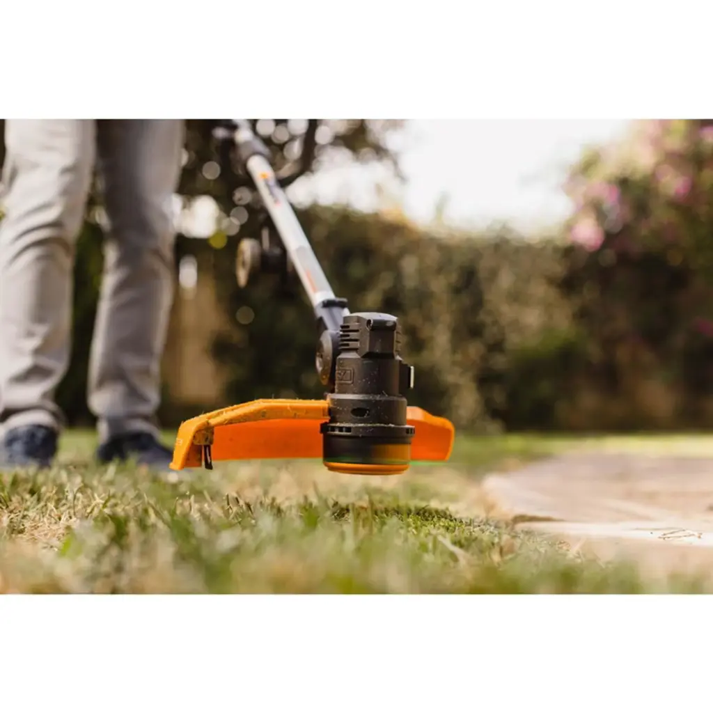 The 20-foot green WORX string trimmer and edger line is made from a patented copolymer nylon resin and synthetic material designed with an oval aerodynamic shape. This patented resin line is softer allowing for the line to stretch and cushion on impact with hard surfaces. The line is 0.08-inches x 20-feet and easily installs into Worx series grass trimmers and edgers.