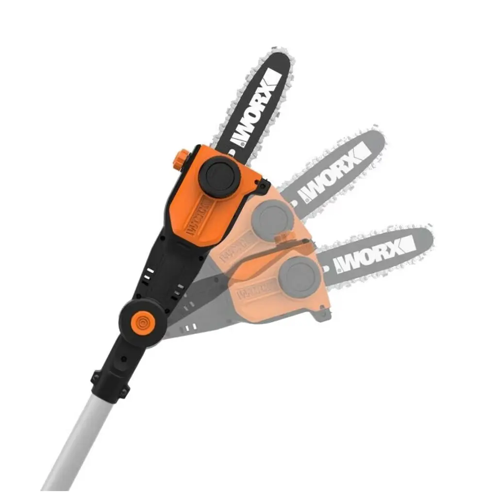 The Worx 8" chainsaw head attachment fits on the WG252 2-in-1 attachment capable to reach all the difficult places. The maximum reach of the tool is 13ft when attached to the pole. The chainsaw head is tool free chain tensioning and automatic lubrication. The head easily attaches to the pole with no tools needed. This includes one 8" chainsaw head.