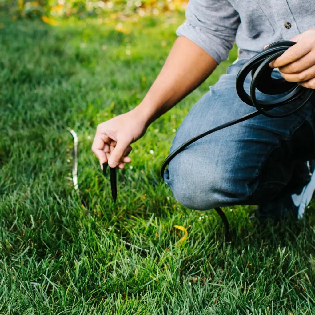 With 66 feet worth of magnetic strip, you can draw new, more intricate borders inside of the larger Landroid mowing boundary. This module is perfect for when you have something in the inner part of your lawn that you want Landroid to stay away from, like flower beds, gardens, or dog houses. It’s meant to be used with the Off Limits module, which detects the magnetic stripping and makes Landroid stay away. This kit comes with enough pegs and connectors to surround oddly shaped areas. And it’s cut up into 4 separate strips for easier placement around those structures.