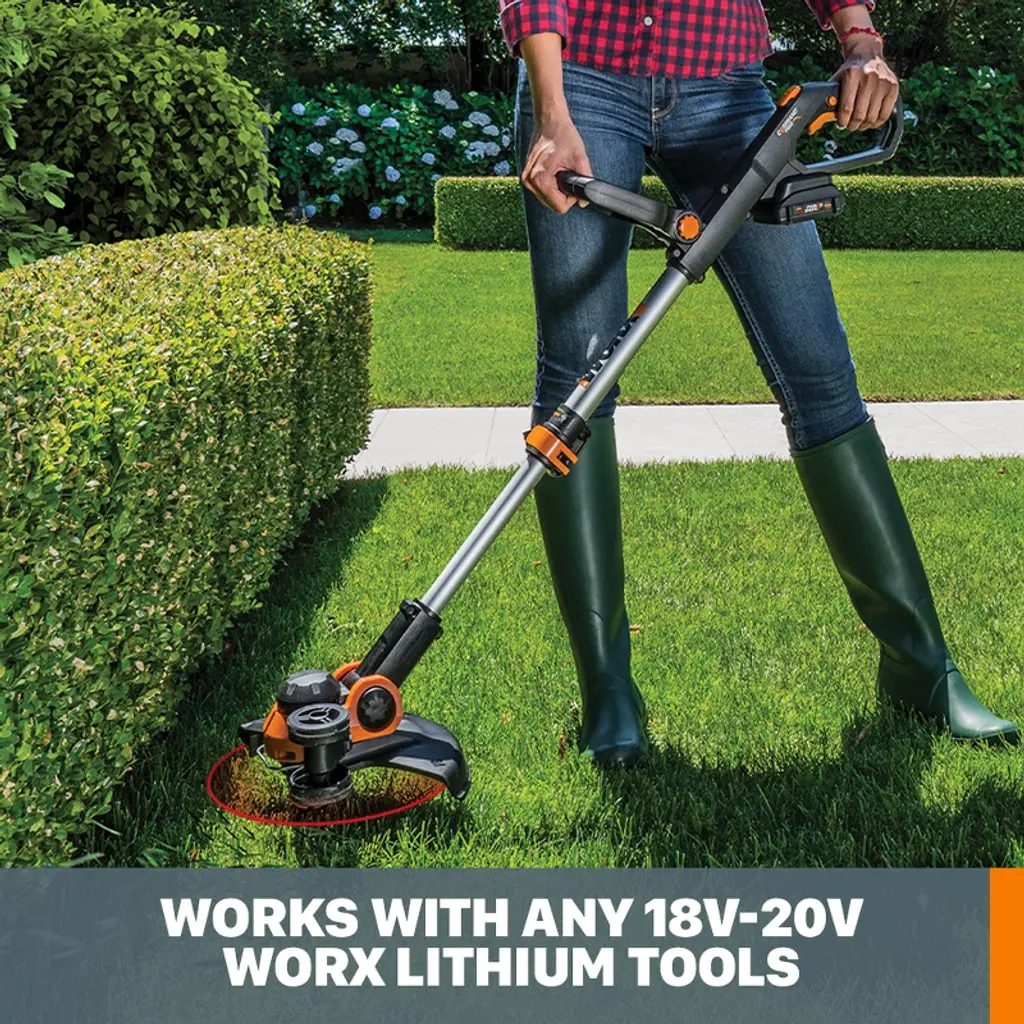 The battery that runs an entire family of power and lawn & garden tools, the Worx 20V Power Share 2.0 Ah battery. It runs your cordless 20V & 18V Worx tools, and even pitches in to help power the 40V & 80V tools on the platform, too. (You’ll need two 20V batteries total for the 40V tools, and four batteries for the 80V tools.) It charges in about 5 hours, but you can get the 20V Quick Charger and fill it back up in about an hour (charger not included). It’s full of MaxLithium tech which makes it much more efficient than the older style of rechargeable batteries that would quickly lose the ability to hold a full charge. So you’ll be able to power drills and circular saws, leaf blowers and grass trimmers, Hydroshots and lawnmowers, over and over and over. It lasts longer than the previous 1.5 Ah model, so you can work longer before needing a recharge or swapping out to another battery. This WA3525 2.0Ah 20V Power Share battery makes a great addition to any existing Worx cordless tool collection. Extra batteries are always nice to have. It’s also an excellent way to start a tool collection with a cordless Worx tool that doesn’t come with a battery. Whichever it is, you’ll be pleased with this power-packed efficient little source of rechargeable energy. Get one and get to work!