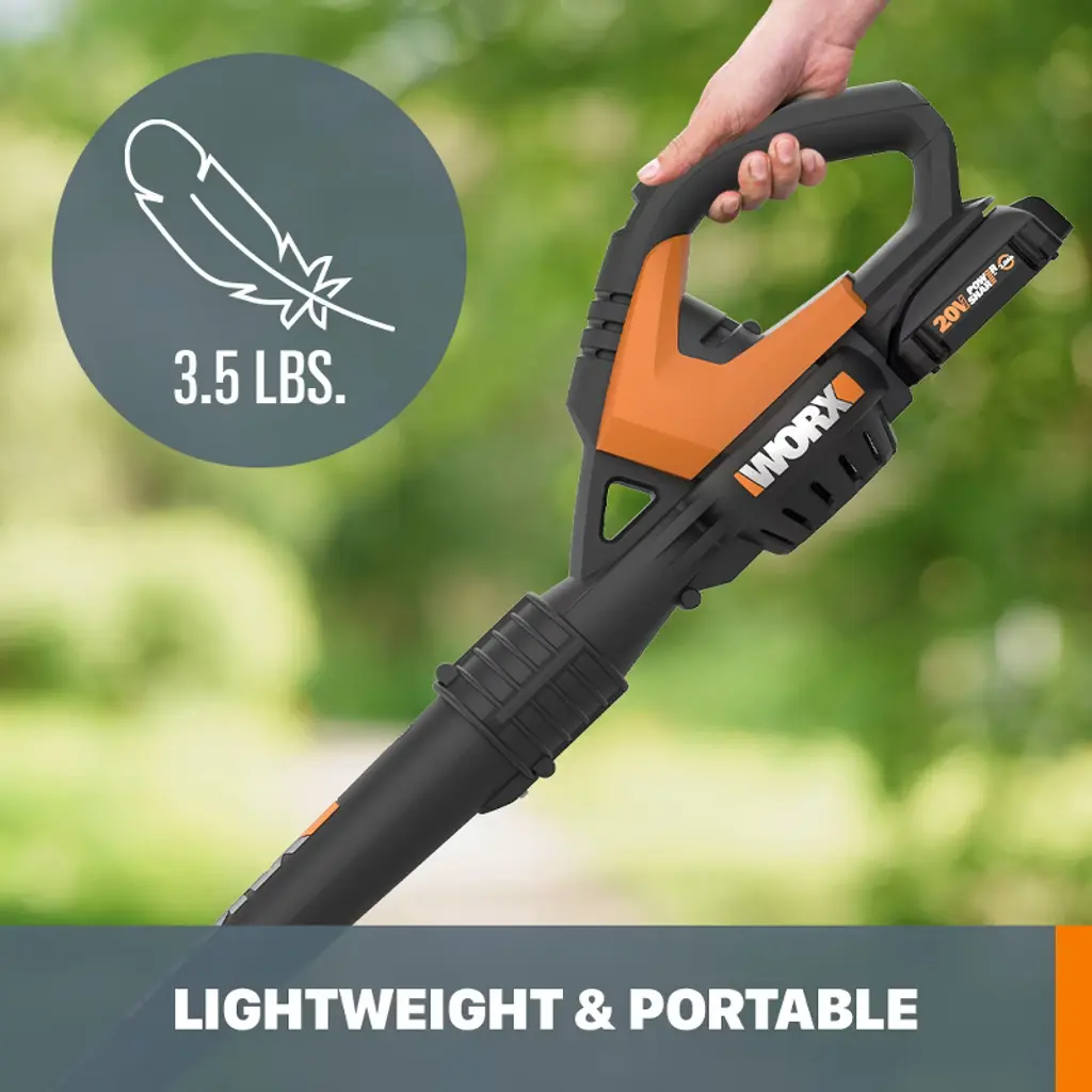 Did you know that 85% of all dirt, dust, and debris in your home is tracked in from the outside? The best way to combat that is by maintaining a CLEANZONE around the perimeter of your house with the 20V WORXAIR Cordless Battery-Powered Handheld Leaf Blower with 8 Accessories. Key areas like decks, driveways, sidewalks, entryways, garages, and basements are often the main culprits. This model comes with multiple attachments to quickly clear all those areas, keeping your home cleaner for longer. Got a couple of minutes before dinner? Simply blow off the deck. Have a few moments before your show starts? Go ahead and sweep off the stoop. With 80 CFM airflow and 12,500 RPM no-load speed, you get a directed, forceful stream of air that’s ideal for quick cleanup tasks both indoors and outdoors. The WORXAIR is the perfect size for indoor and outdoor cleaning, it's powerful enough for everyday tasks but compact and quiet enough to be used without disturbing the household. Accessories includes wide nozzle, dust brush, extension hose and clip, short tube, detail brush, inflator nozzle, deflation cover, and dust tube. These attachments allow you to detail your car, clean out keyboards, clear off deck furniture, and more. It’s compatible with WORX Power Share batteries, which are used across over 140 other WORX Power Share tools, outdoor equipment, and lifestyle products