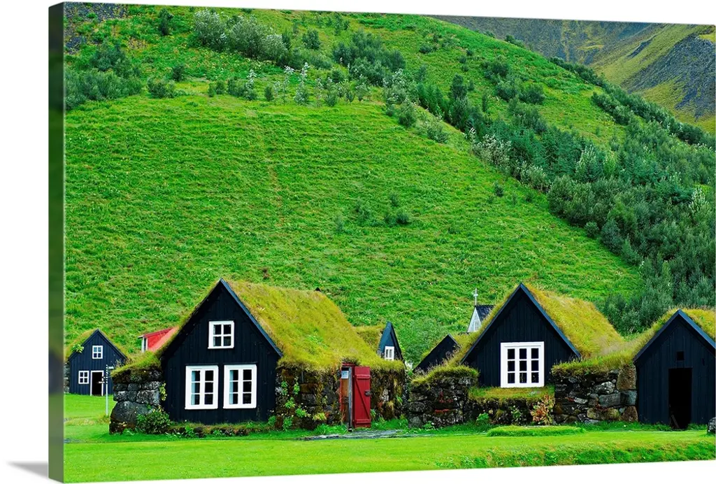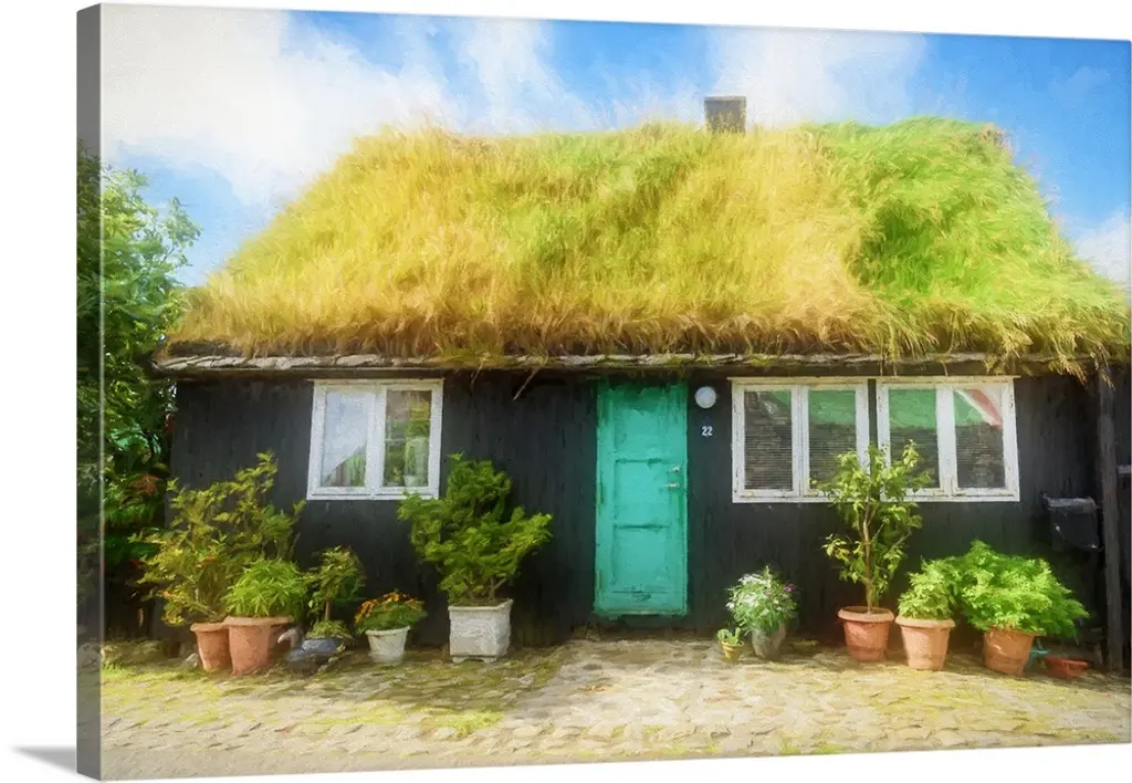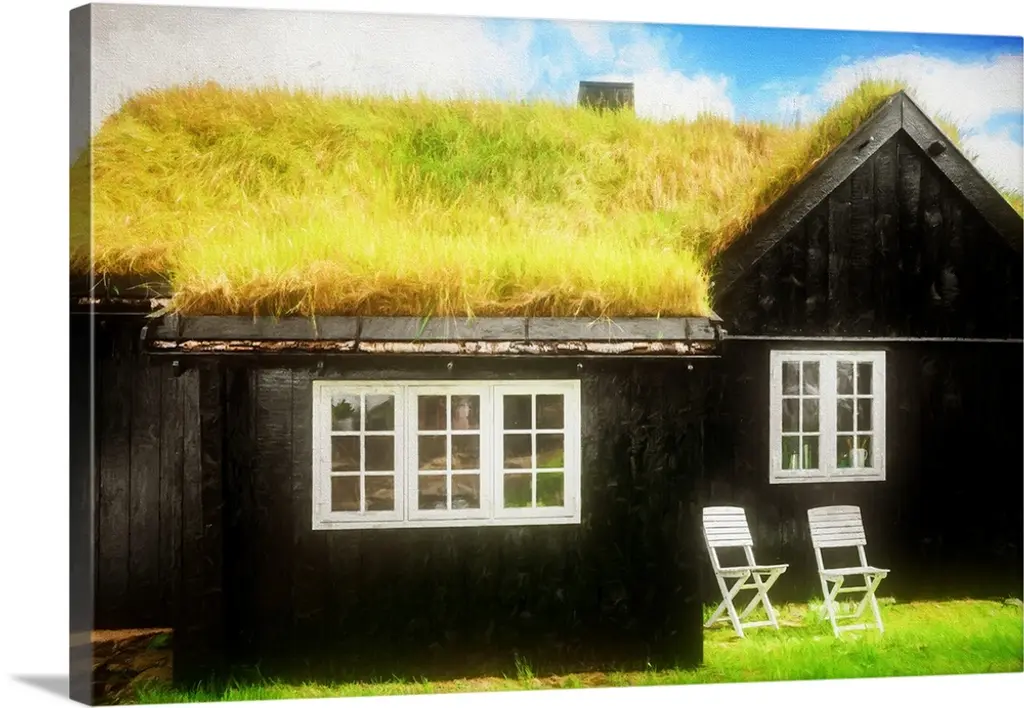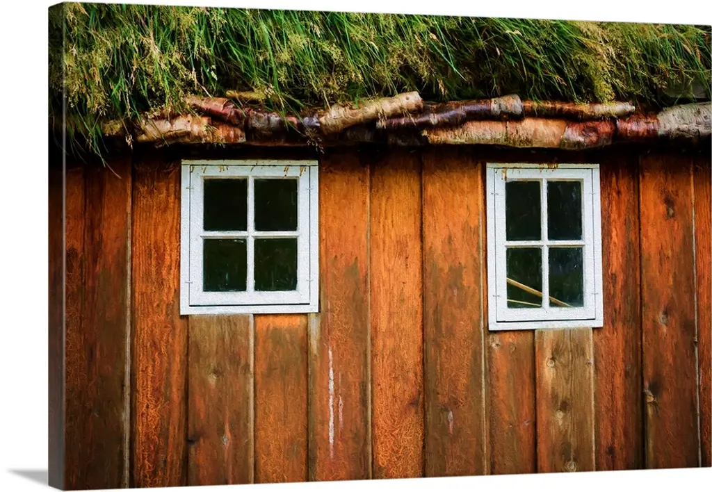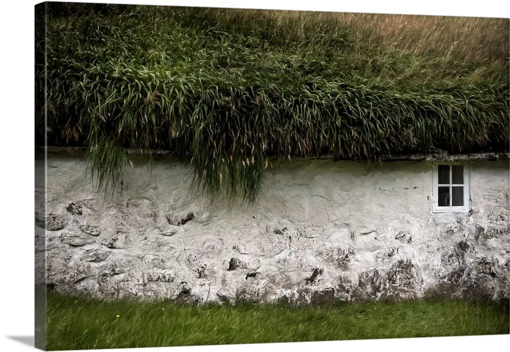 Sunlight shining over a window in the grassy roof of a house.