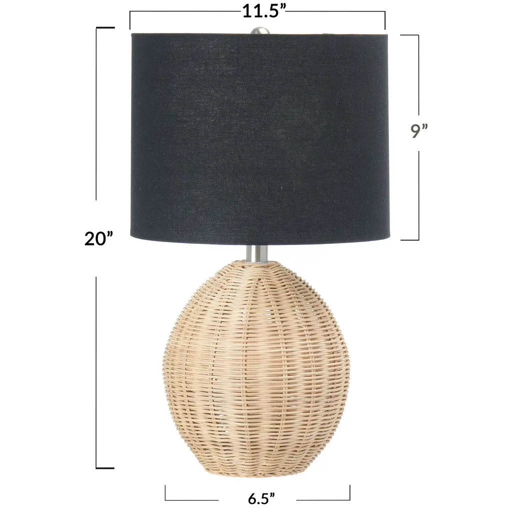 Woven Rattan Table Lamp With Drum Shade - Natural