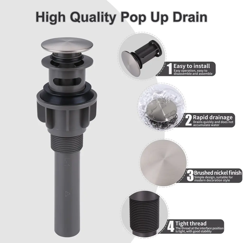 Wowow 2 1/8 In. X 9 1/2 In. X 9 1/2 In. Pop-Up Drain Assembly - Brushed Nickel - 1 Pack