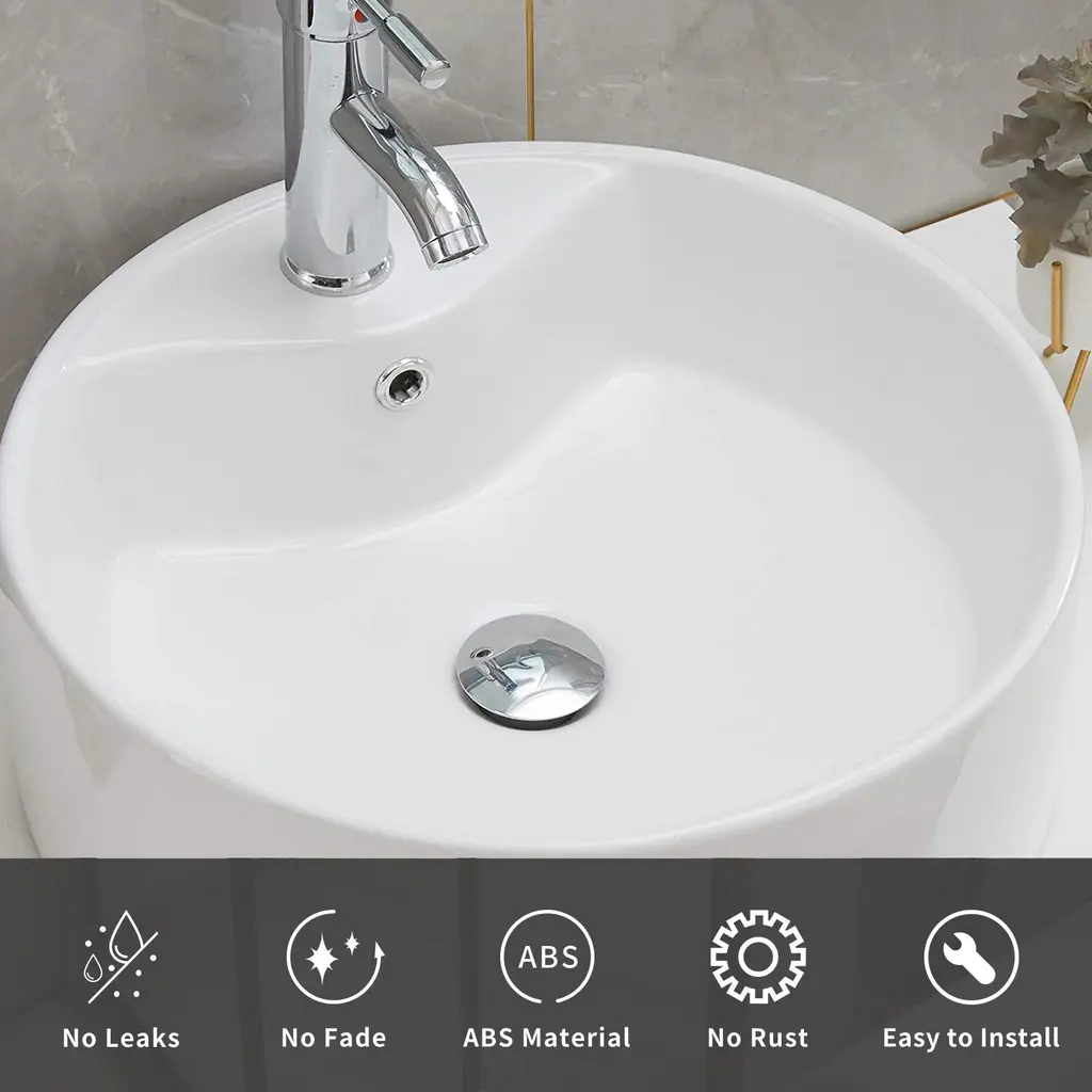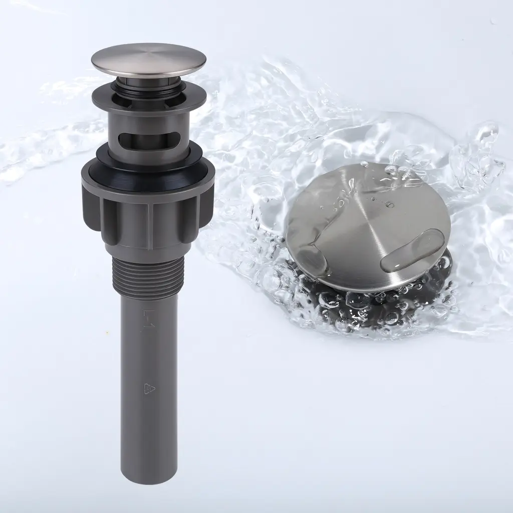 Overflow Design Wash basin with overflow hole, choose our drainer with overflow hole. Note: With overflow fits bathroom vanity sink with a drain hole diameter of 1-1/2 in. or 1-3/4 in. Detail Size Diameter of the Pop-Up Cap:2.2 in. Height (Pop Up Close): 8.66 in. Height (Pop Up Open): 9.44 in. Fits Drain Hole Size: 1/2 in. - 1 3/4'' Max. Thickness: 1.9"Feature: